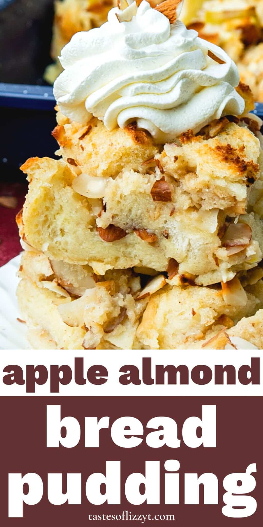 Almond Apple bread pudding topped with thin sliced almonds is the perfect weekend brunch recipe if you're craving something sweet and filling.