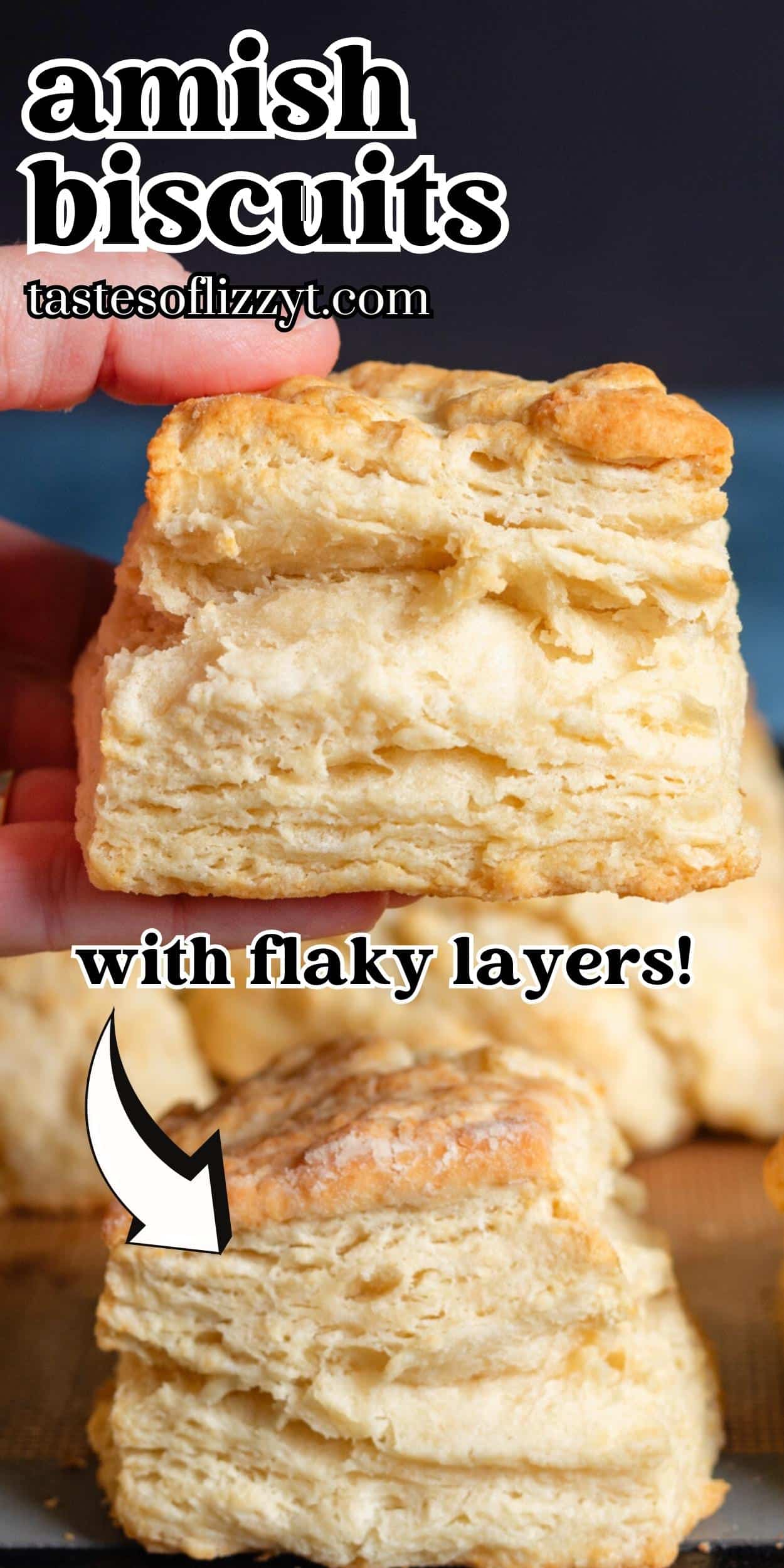 This Amish Biscuit recipe comes together in less than 30 minutes. I'll teach you how to make flaky layers in biscuits. I have three secrets for fluffy biscuits with flaky layers: buttermilk, lots of cold butter, and the "folding technique". This recipe really does make the best biscuits!