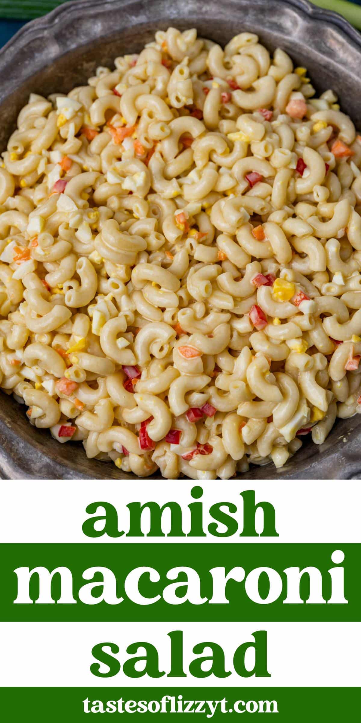 Old fashioned Amish Macaroni Salad is an easy side dish with only 10 ingredients. The dressing is sweet and tangy. Perfect for picnics!