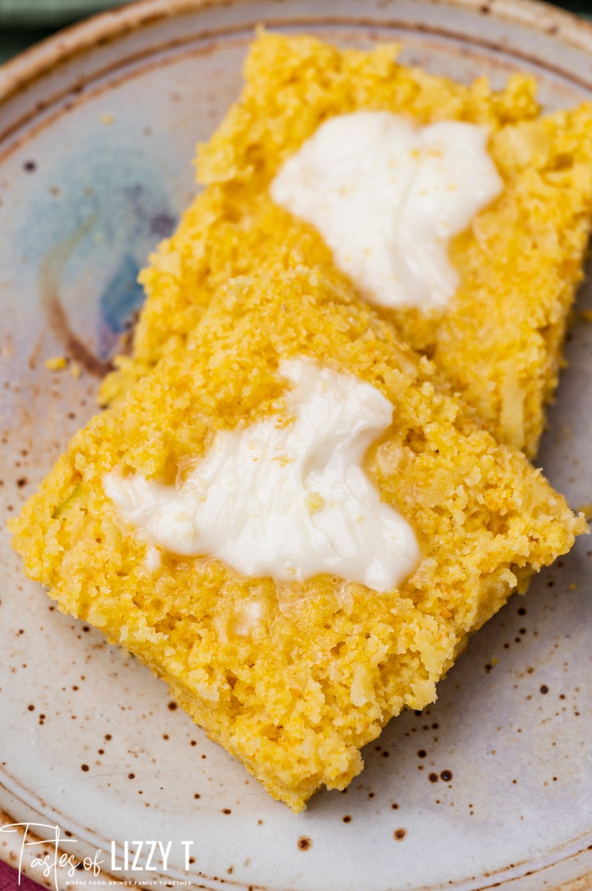 The calories shown are based on the cornbread being cut into 9 pieces, with 1 serving being 1 slice of cornbread. Since different brands of ingredients have different nutritional information, the calories shown are just an estimate. **We are not dietitians and recommend you seek a nutritionist for exact nutritional information. The information in the nutrition box are calculated through a program and there is room for error. If you need an accurate count, I recommend running the ingredients through your favorite nutrition calculator.**