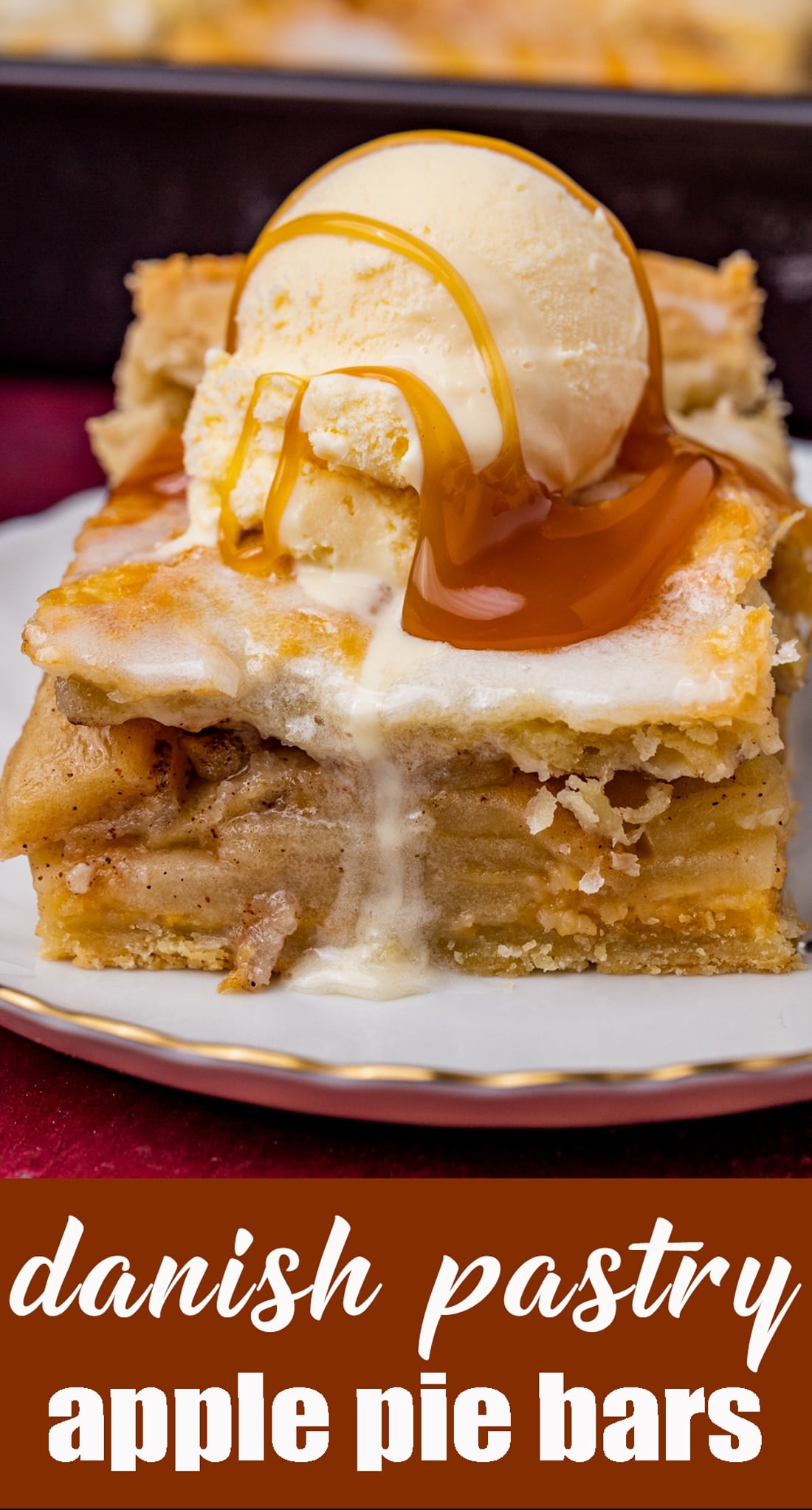 Homemade danish pastry with loads of apples baked inside. The almond glaze is a must on these apple pie bars.