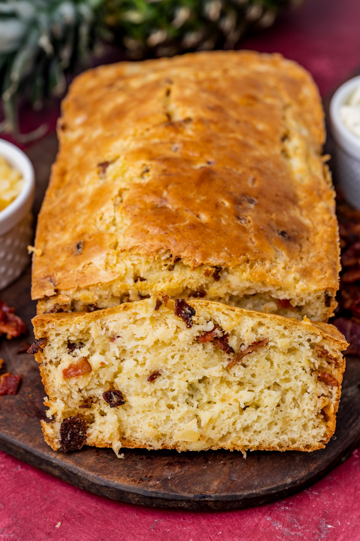 - Texture: This bread is moist and stays moist thanks to the fruit inside. The bacon is best if you cook it to crispy and adds a nice texture to the bread.