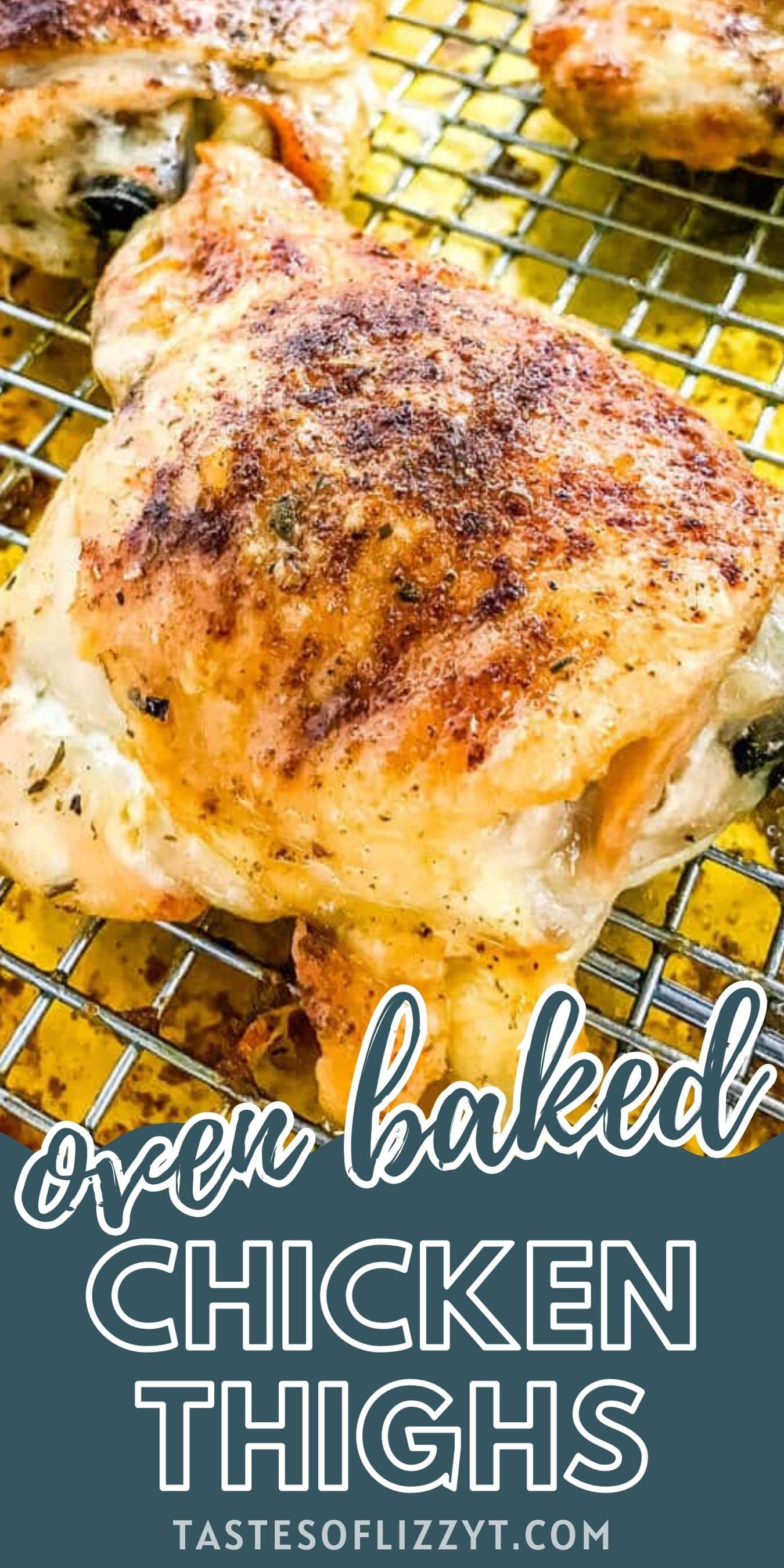 Our two secrets to the best oven baked chicken thighs, a wire rack and the internal meat temperature, will give you the crispiest skin and the juiciest, tender meat.