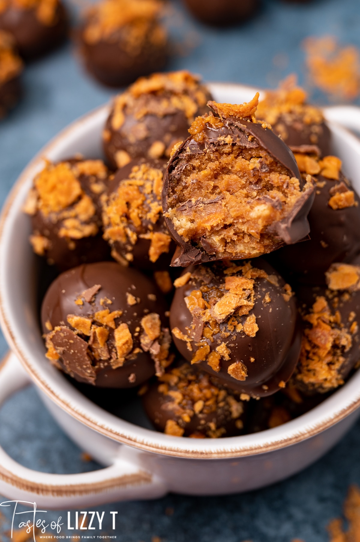 One of the first ideas we had for Lizzy T recipes were tornado truffles. I know…what in the world is a tornado truffle? In theory it was a good thing. Take a bunch of our favorite desserts and mash them together into one chocolate truffle, then dip in chocolate.