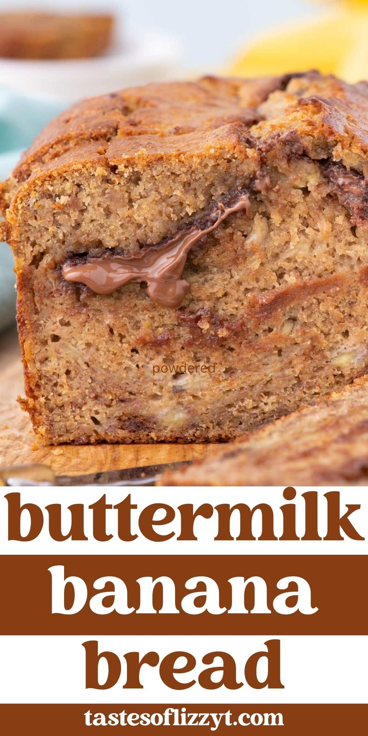Make this moist banana bread recipe with buttermilk! This easy buttermilk banana bread combines classic flavor with a unique milk chocolate ribbon for a delightful twist.
