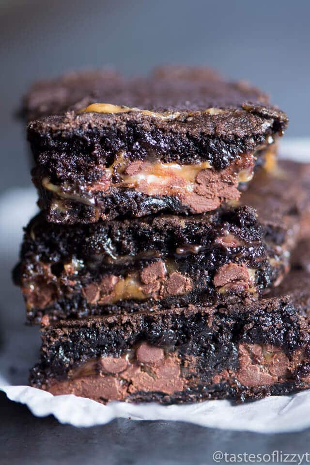 Caramel Brownies. The gooiest, fudgiest brownies you’ll ever find, stuffed with soft caramel. It’s not surprising we’d be crazy for these, right?