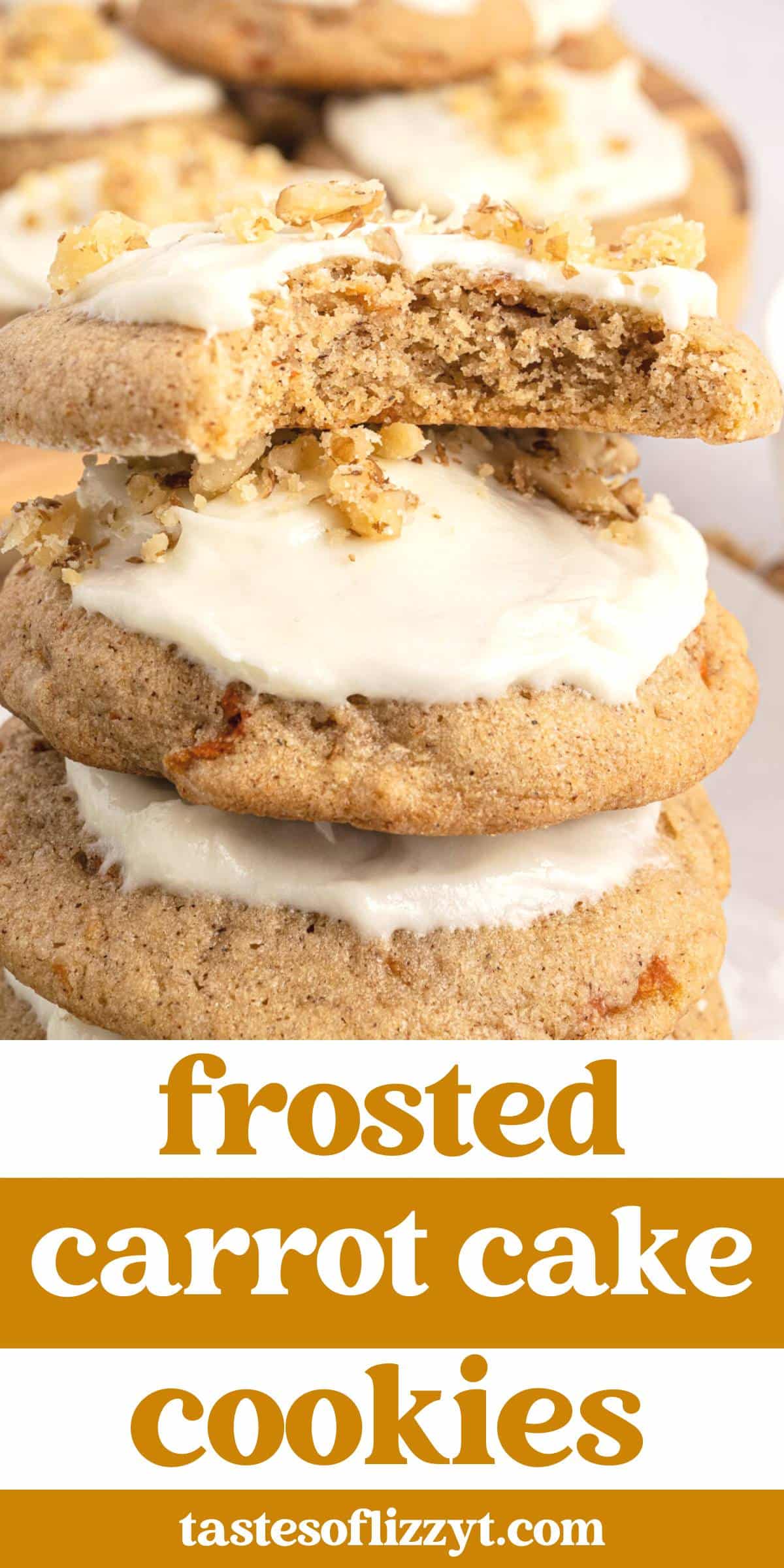 - Flavor: Cinnamon and brown sugar with cookies with a tangy and sweet cream cheese frosting and the mild nuttiness of walnuts. The grated carrots add a lovely sweetness and moisture to the cookies.