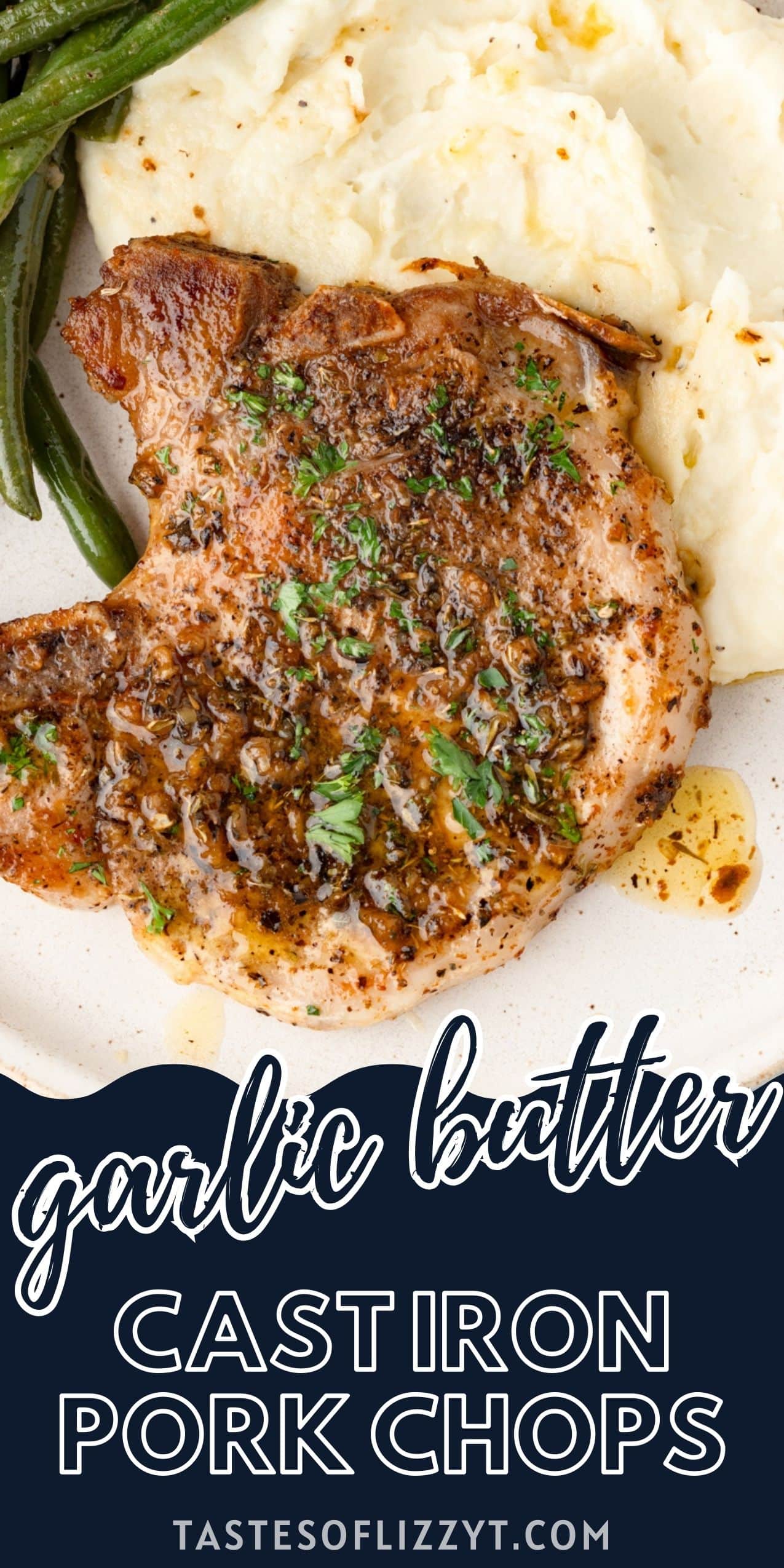 Need a 25 minute dinner idea? Cast Iron Pork Chops are perfectly seared and cooked with a rich garlic and herbs. They are ideal for busy weeknights or even a special weekend meal.