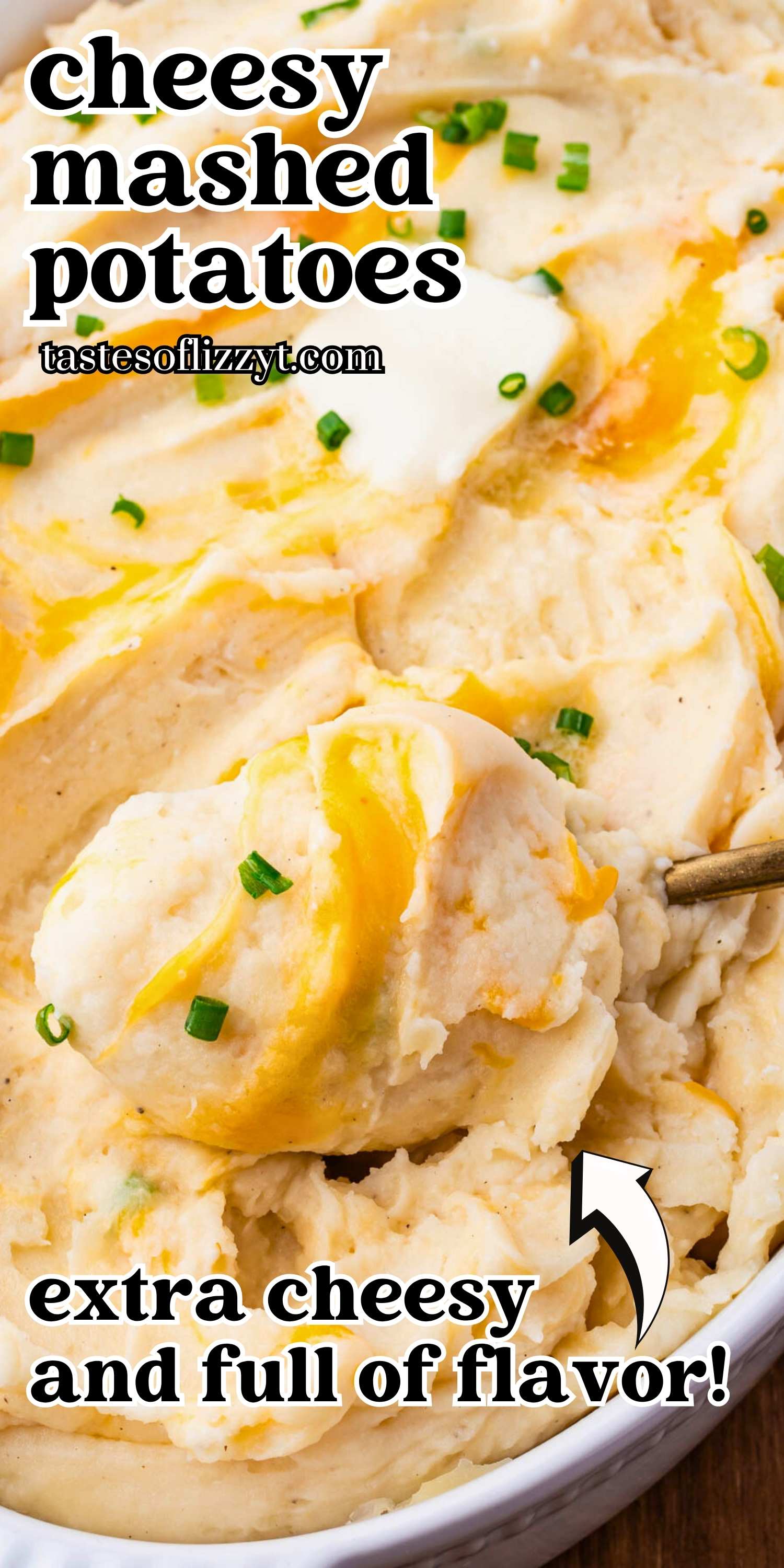 These Cheesy Mashed Potatoes with Cheese are rich and velvety, thanks to two types of cheese, sour cream and heavy cream.