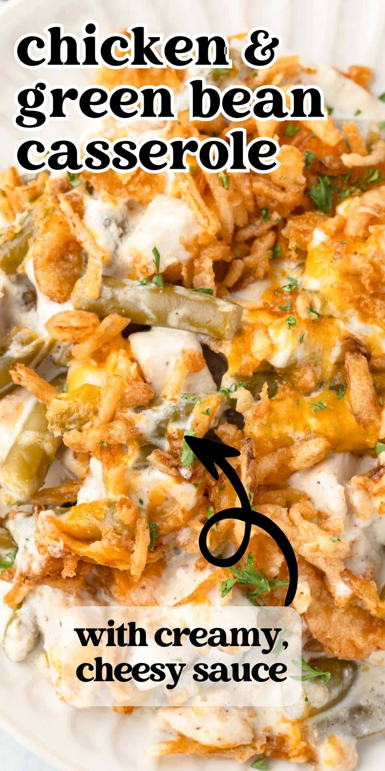 This Chicken and Green Bean Casserole is an easy weeknight meal packed with cheesy chicken in a creamy sauce. The crunchy French-fried onions on top add the perfect finishing touch.
