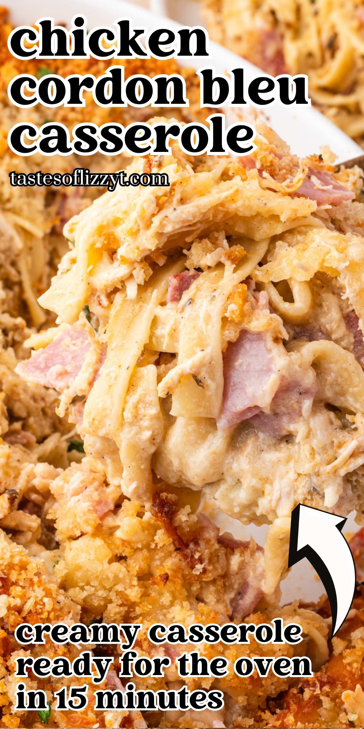 Shredded chicken, ham, egg noodles and melted Swiss cheese are coated in a creamy cordon bleu sauce. The easy chicken casserole is topped with a crispy Panko crumbs to add crunch to every bite. With just 15 minutes prep, it’s easy enough for a weeknight meal, just like our chicken casserole with ritz crackers and chicken tater tot casserole.