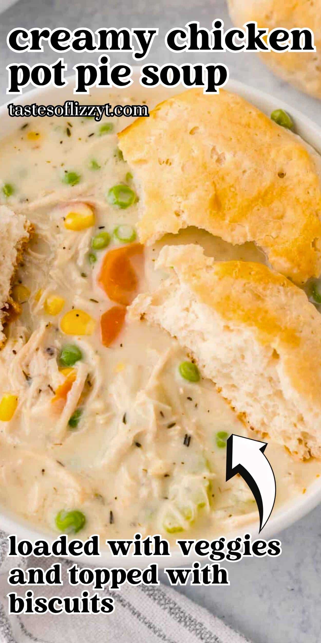 Comfort food is at its best with this chicken pot pie soup recipe. It's creamy, loaded with veggies, and cooks on the stovetop.