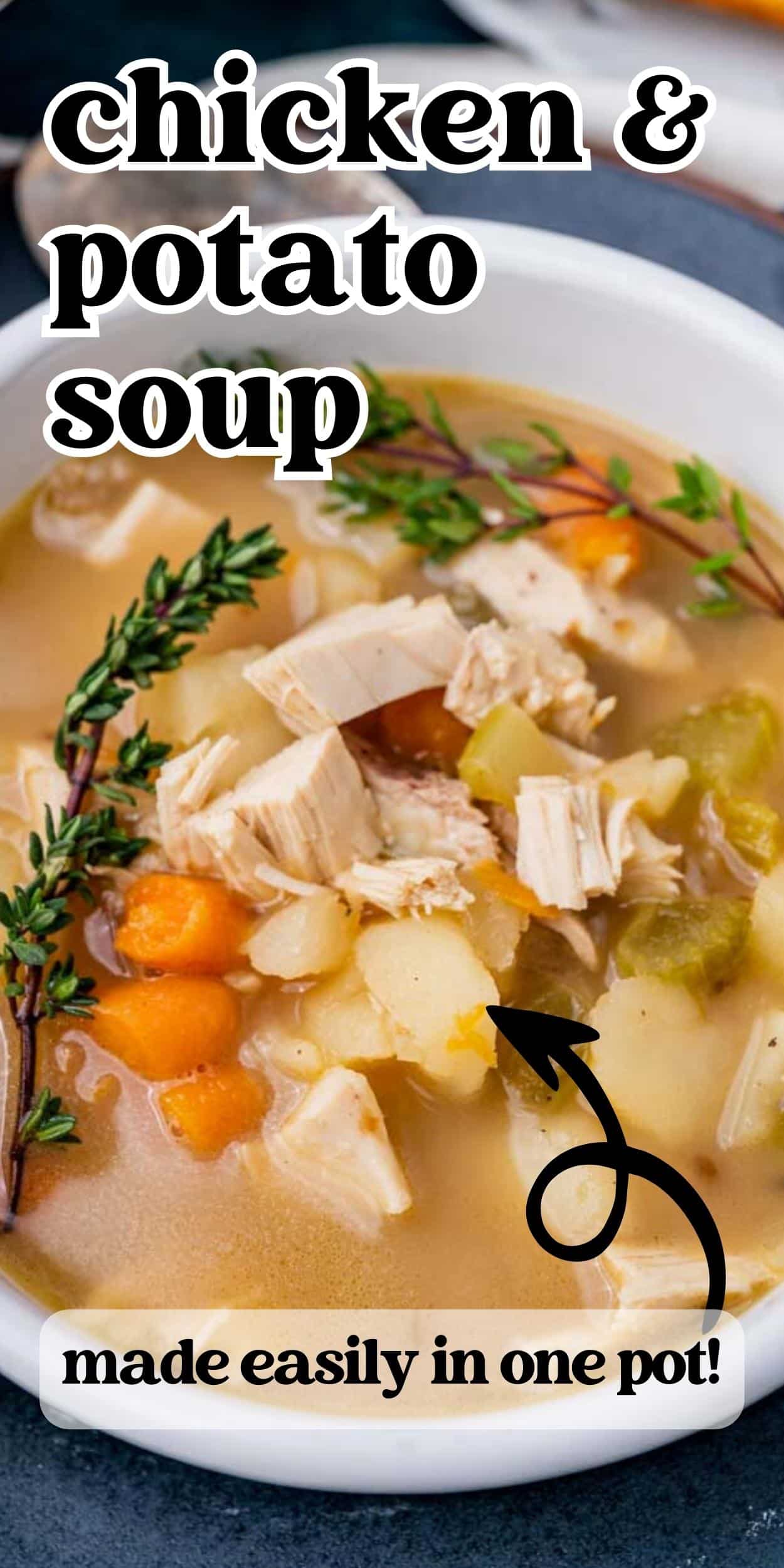 Switch out the noodles for potatoes in your favorite chicken soup. This healthy & easy chicken and potato soup can be made with just one pot.