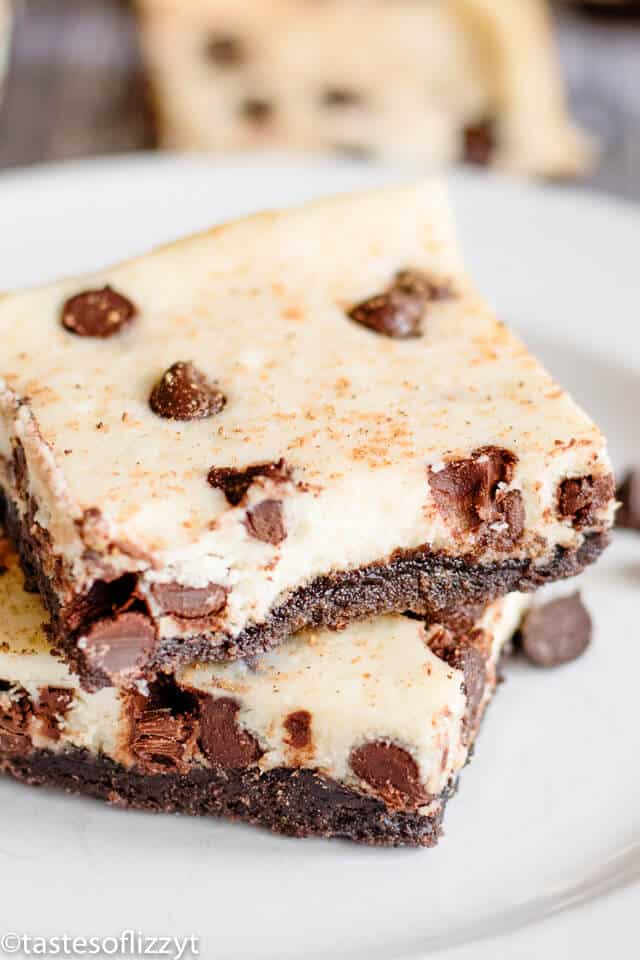 If you love eggnog, try these easy chocolate chip eggnog cheesecake bars. This sweet chocolate dessert has an Oreo crust and cream cheese filling.