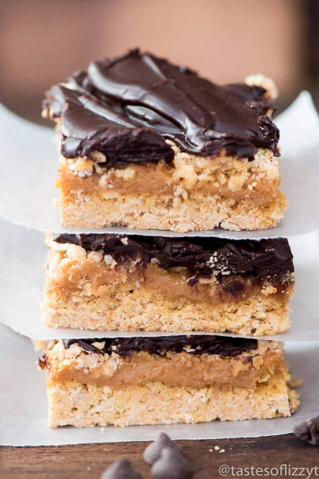 Take a bite into these delicious bars and what do you get? The rich peanut butter and chocolate flavor, followed by a caramel…cheesecake sort of vibe. And all of that within the soft, chewy oat texture that is not just the crust, but also the topping on these ooey gooey bars. What seemed like a delicious disaster turned out to be quite the masterpiece, didn’t it?