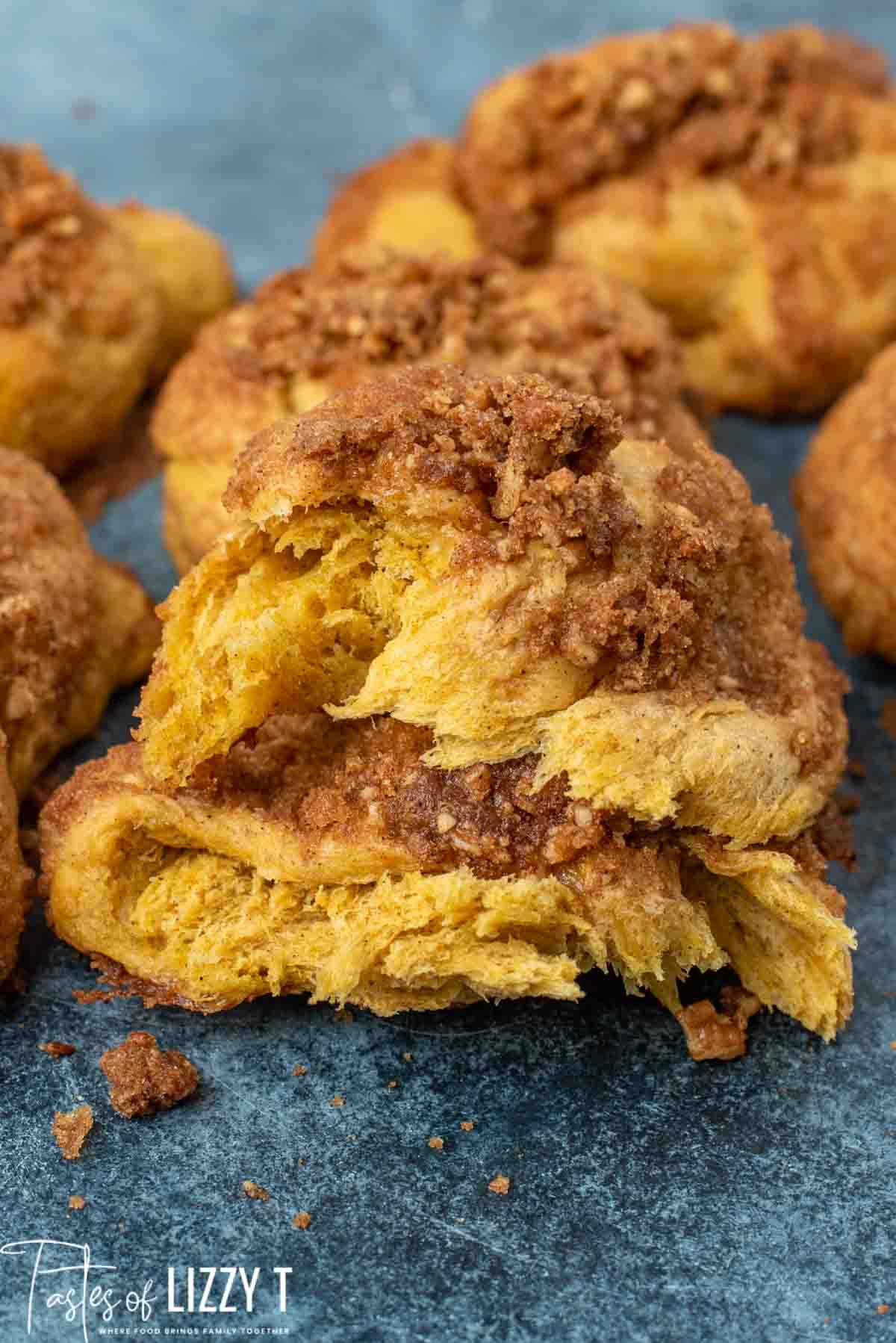 - Before baking, sprinkle the cinnamon crunch mixture on the tops of the pumpkin knots.