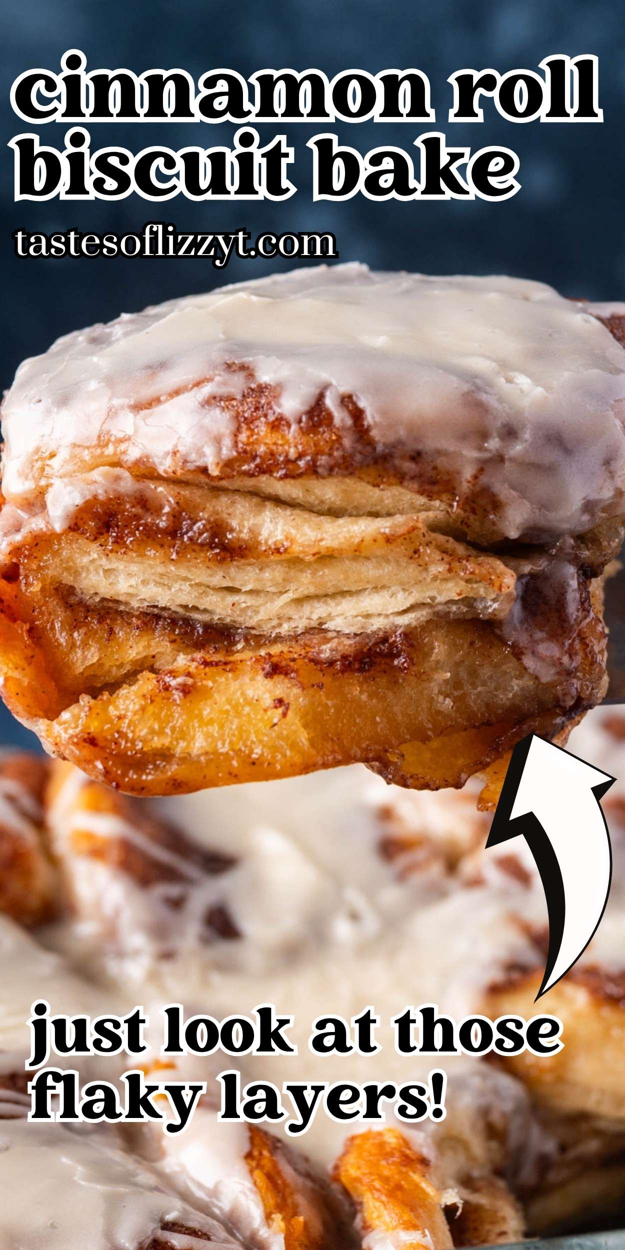 Use a can of refrigerated biscuits to make this easy cinnamon roll biscuit bake. The flaky layers are baked with cinnamon sugar butter and topped with powdered sugar glaze.