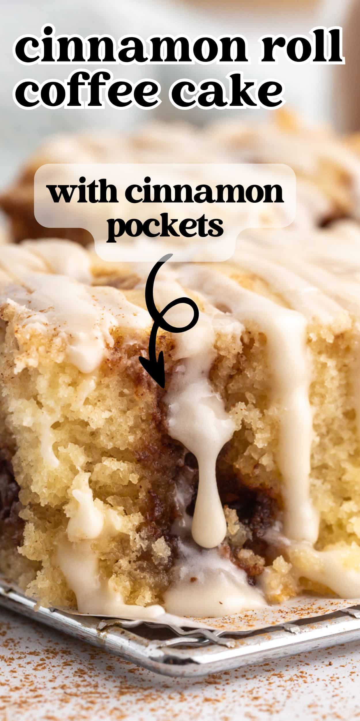 Make an easy coffee cake for breakfast that tastes just like a soft sweet roll! This Cinnamon Roll Coffee Cake has a cinnamon sugar swirl and is topped with cream glaze.