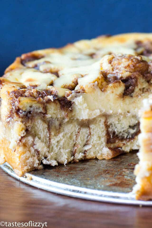 If you love cinnamon rolls and cheesecake, you’re going to love this recipe.  It tastes like a gooey cinnamon roll with lots of cream cheese frosting on top!  One of my absolute favorite things!