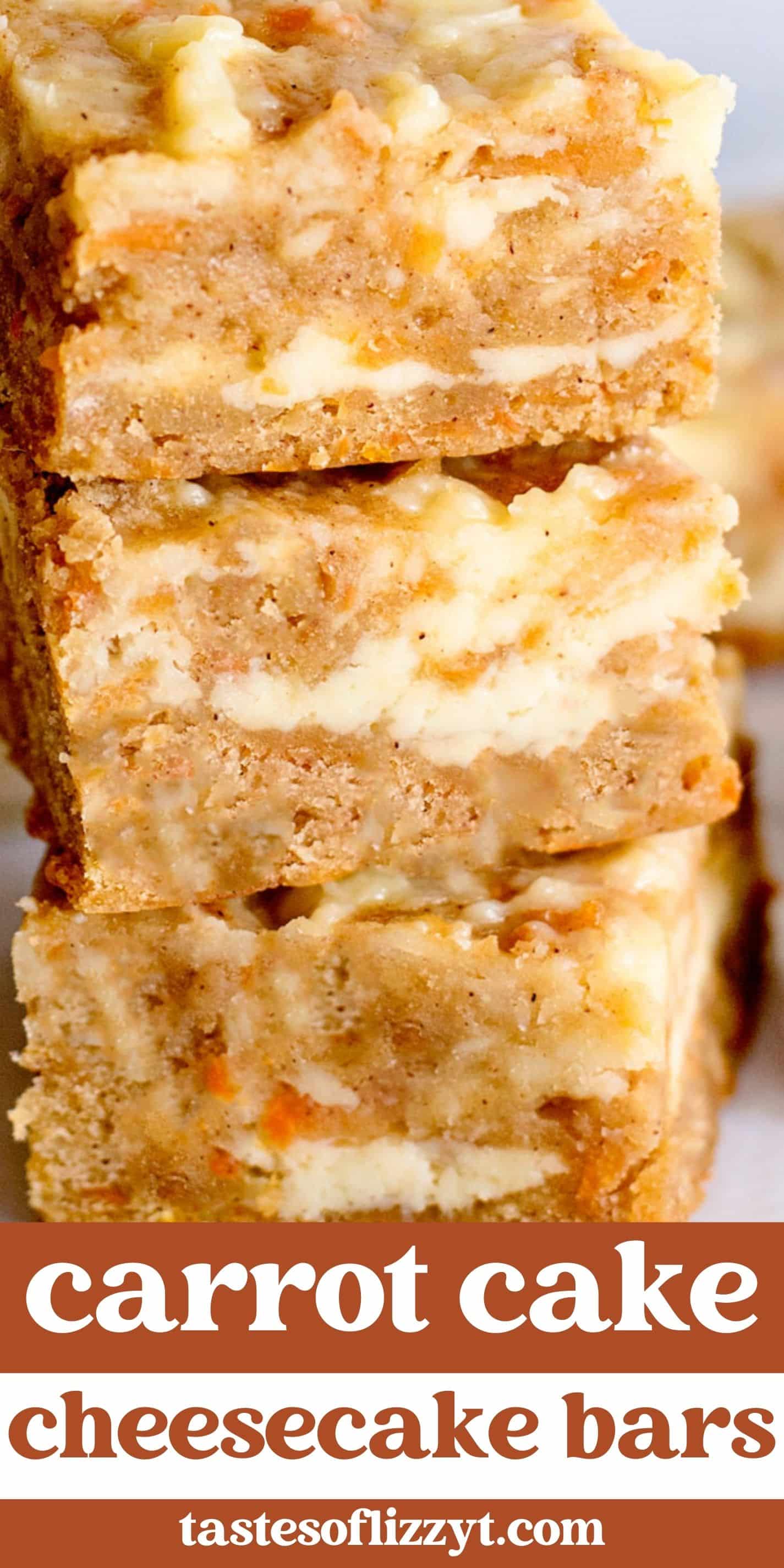 These carrot cake cheesecake bars have a sweet cream cheese swirl, making this carrot cake dessert recipe an impressive treat for Easter dinner or spring parties.