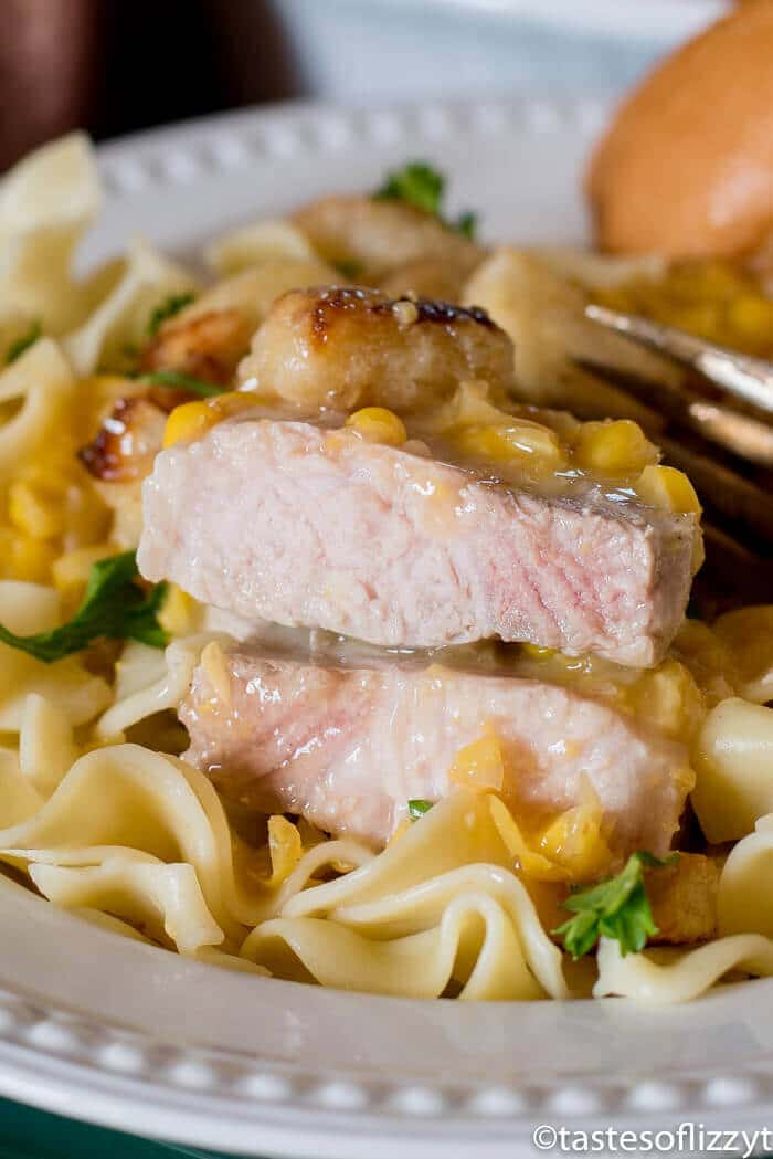 And I may just start with this Cream Corn Pork Chops recipe. It’s a classic. Pork chops browned in oil, then baked to a juicy perfection with cream corn poured overtop. But my favorite part? The sauteed onions and buttery bread crumbs that add a boost of flavor and a bit of crunch to the creamy corn casserole.