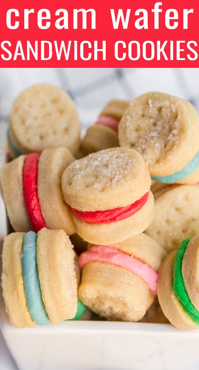 Cream Wafer Sandwich Cookies are made with only 4 ingredients: cream, flour, butter and sugar. Decorate them in any shape or color for holidays. They melt in your mouth.