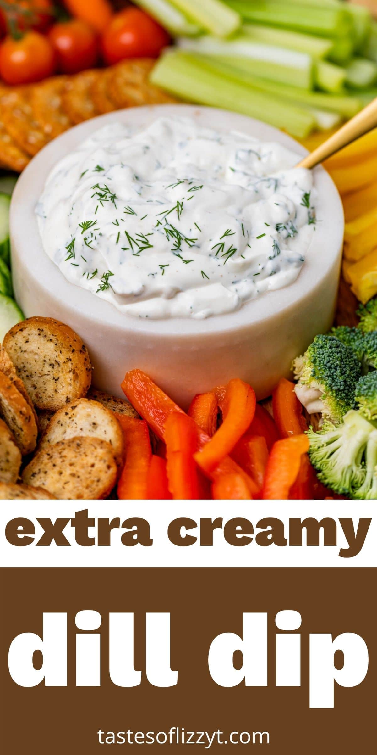 This Creamy Dill Dip is a mix of both mayonnaise and sour cream. It has the perfect smoothness with just a hint of tang. It pairs perfectly not just with any vegetable, but also with chips, cheeses, crackers, breads…and as a dipping sauce for salmon or chicken.
