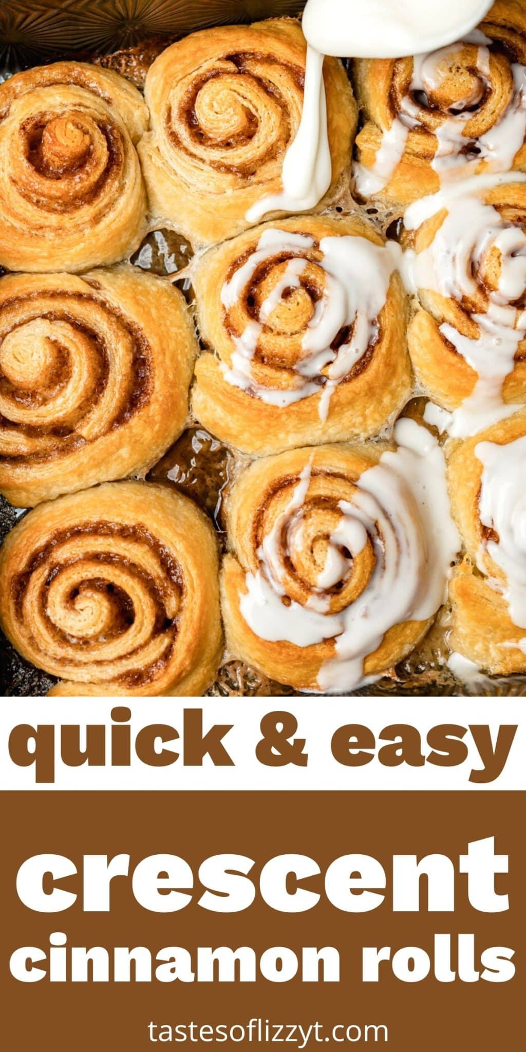 We have just about every type of cinnamon roll you could ask for on our blog. Puff pastry cinnamon rolls, traditional cinnamon rolls, Bisquick cinnamon rolls and even no yeast cinnamon rolls. But cinnamon rolls made with crescent rolls are quick. And they’re delicious.