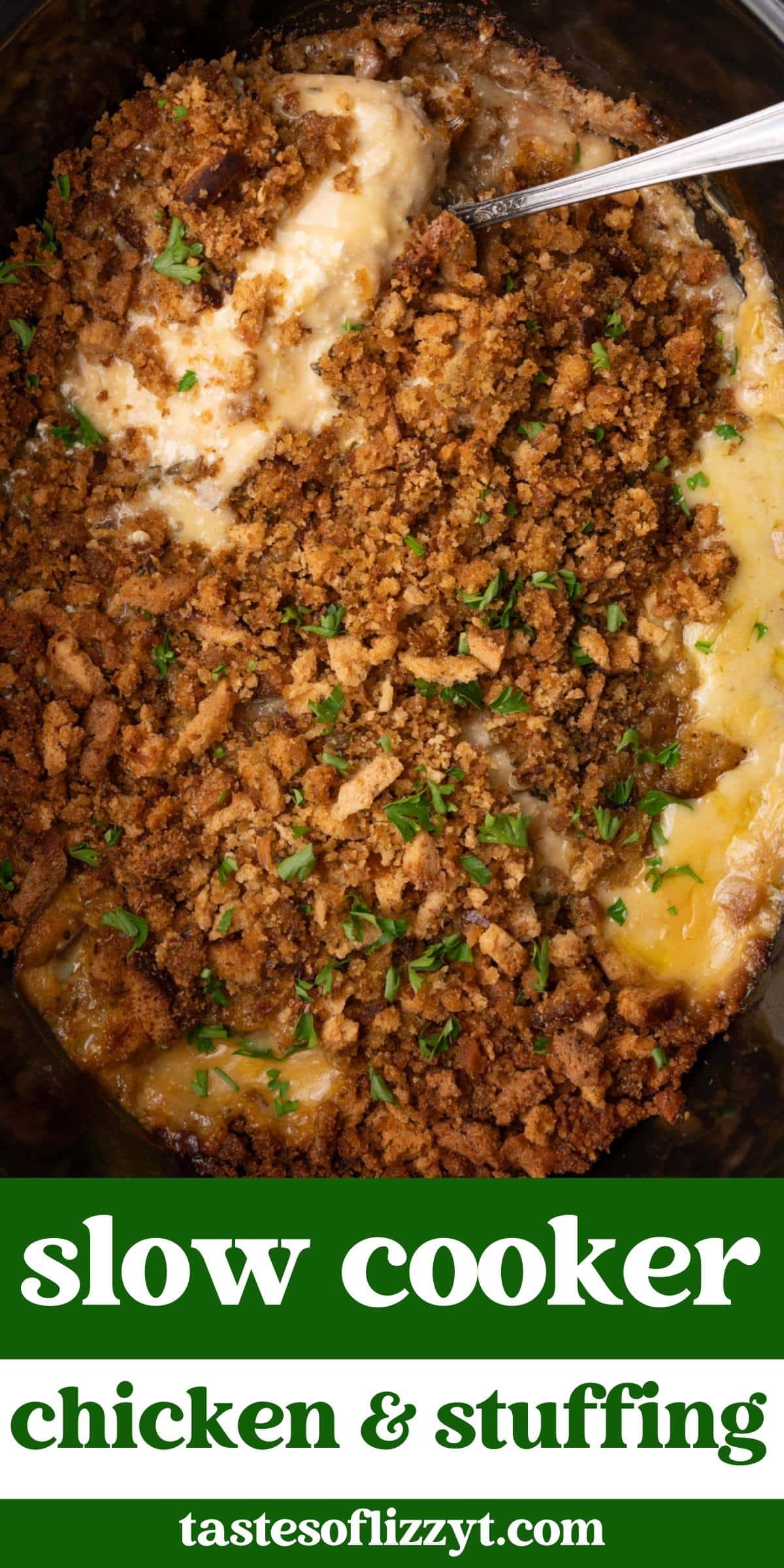- Texture: My favorite chicken is the fork-tender kind that comes out of the slow cooker. The chicken is creamy thanks to the sour cream and cream of chicken soup. And the stuffing on top adds a slight texture to the tender chicken.