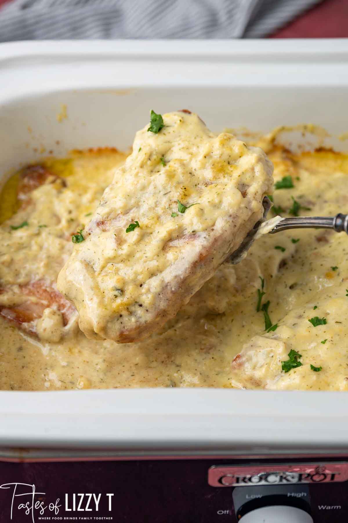 This is one of the most commonly asked questions. Why? Because it takes an extra step and dirties an extra pan. So is searing before slow cooking really worth it? We say it is. Searing the chops brings out flavor and also caramelizes the outside of the pork chops. Plus, it looks prettier with that golden brown color, even after simmering all day in the slow cooker.
