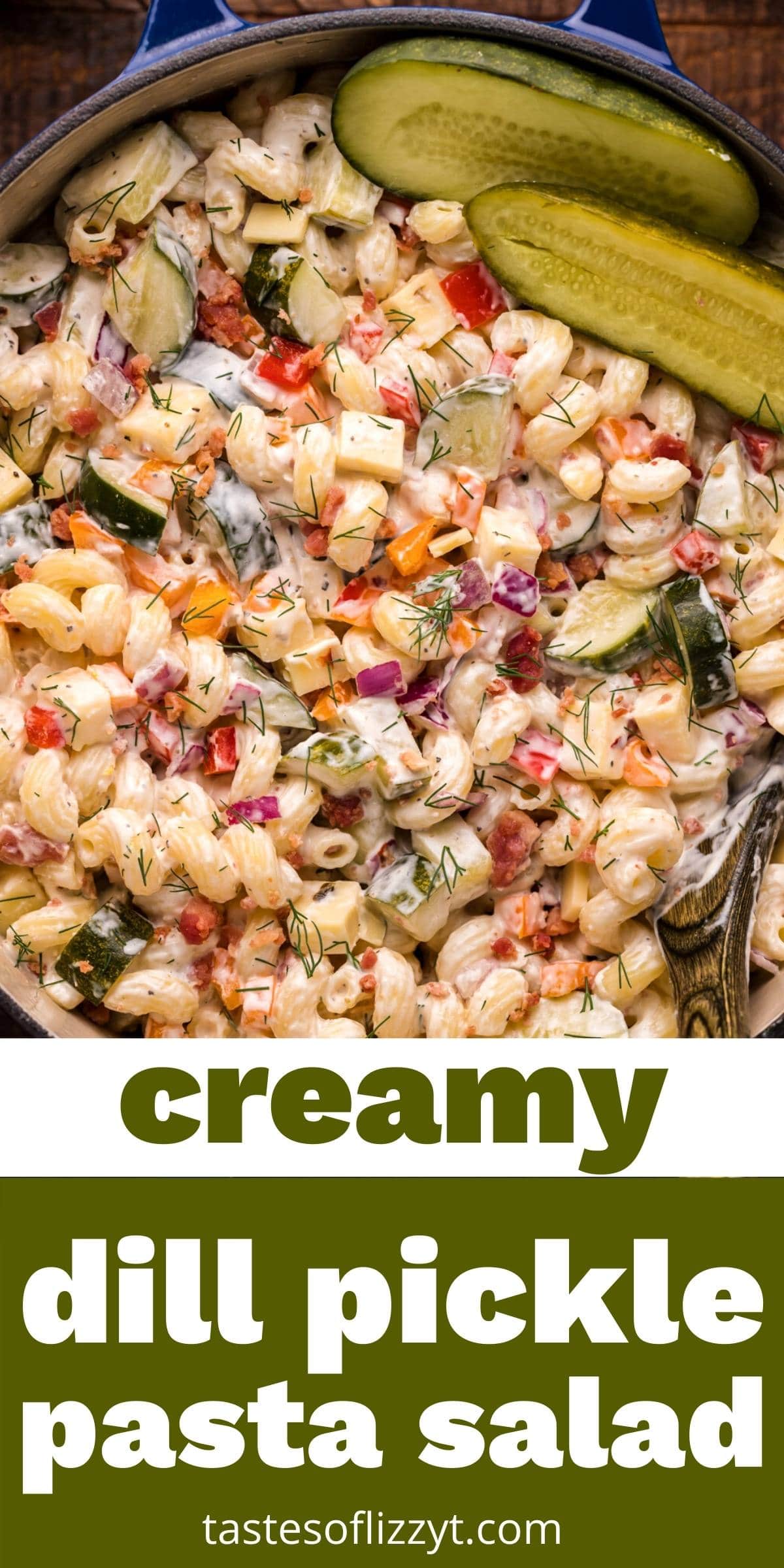 Pickles add a pop of tangy flavor to this picnic salad recipe. Dill Pickle Pasta Salad with a fresh dill, cool & creamy dressing.