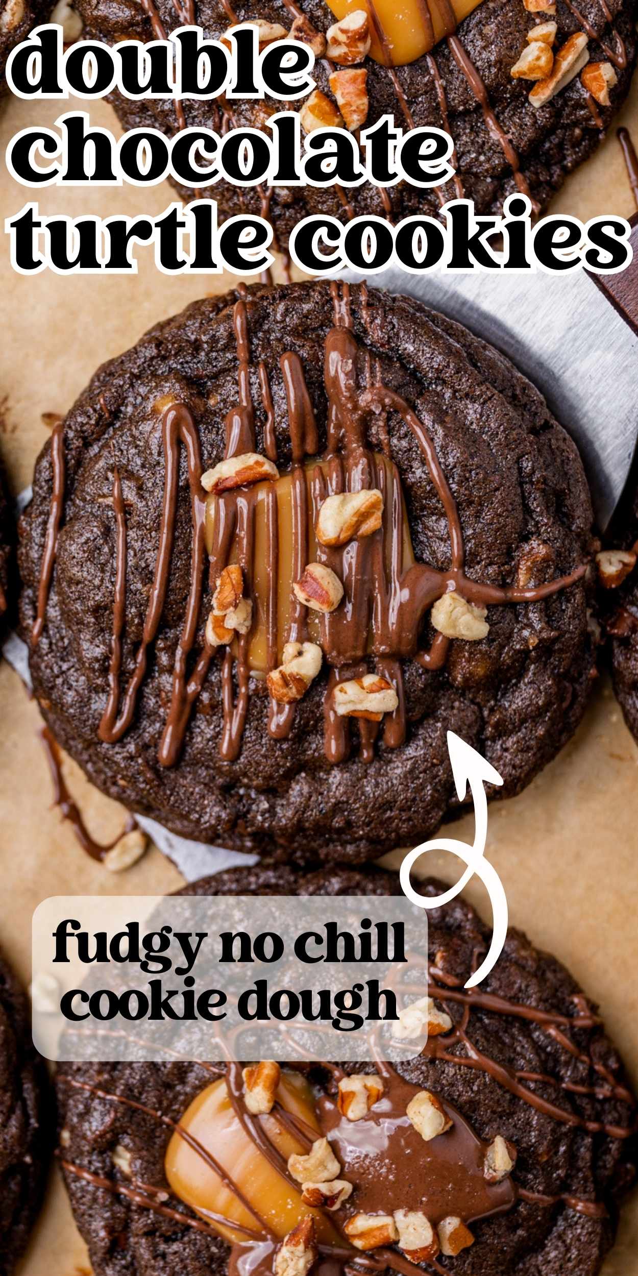 Moist, chewy, and full of chocolate, these Double Chocolate Turtle Cookies are complete with pecans and caramel. Best served warm & gooey.