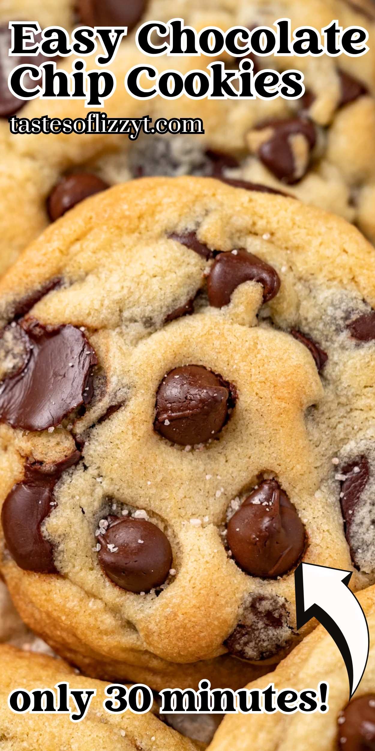 Freshly baked cookies in 30 minutes! The perfectly chewy easy chocolate chip cookies use one bowl, a spoon to mix and no dough chilling.