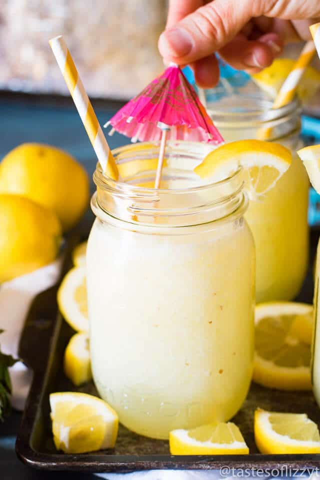 My kids love this blended frozen lemonade and I’m happy to make it for them since it only takes less than 5 minutes in the blender. Serve it while you are waiting for your burgers to grill, after an afternoon swim, for a bedtime snack…