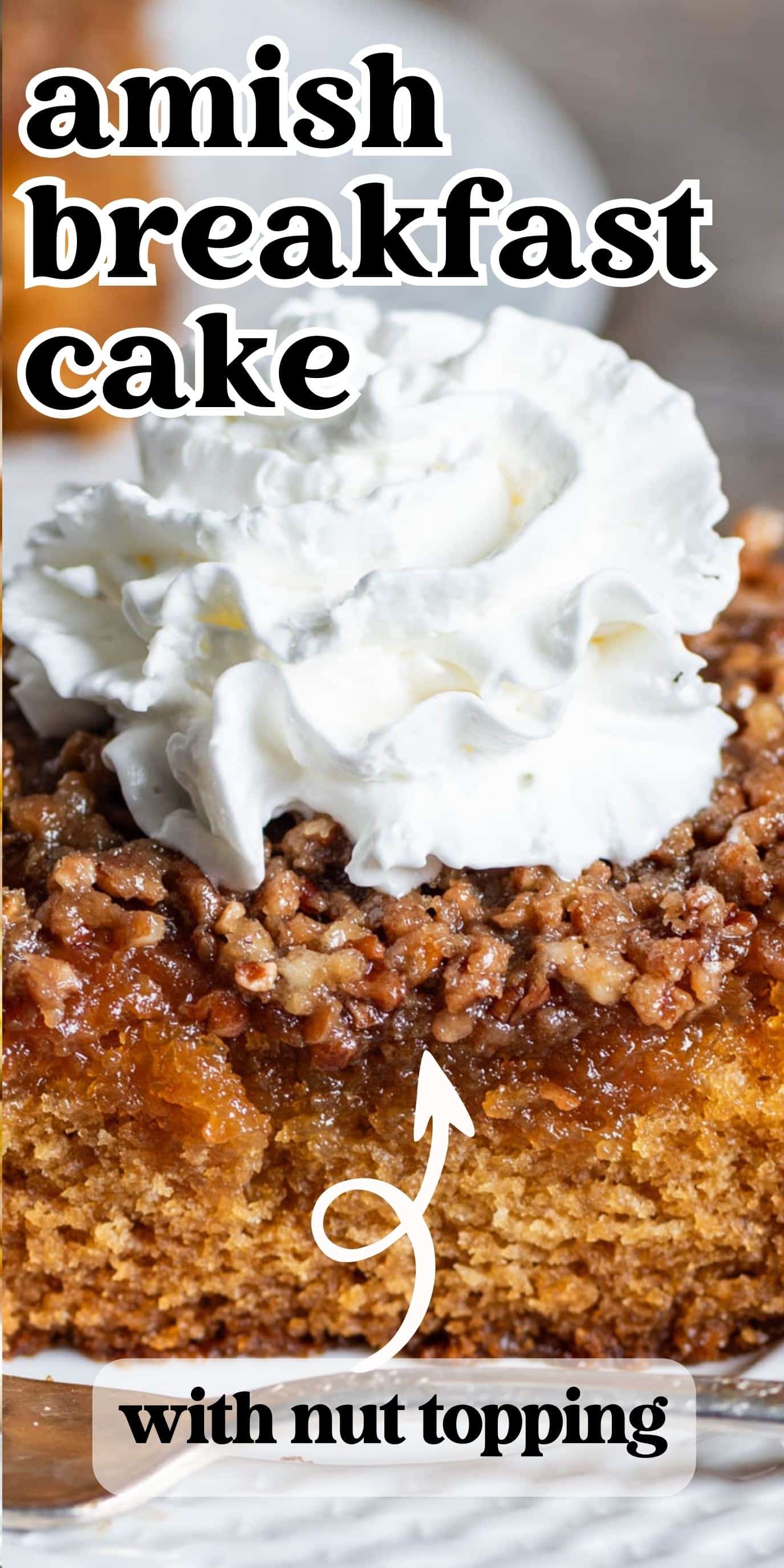 An easy, 1-bowl, 9×13 cake with that is extra moist. This Amish cake recipe has a butter, brown sugar & nut topping that bakes into the top of the cake.