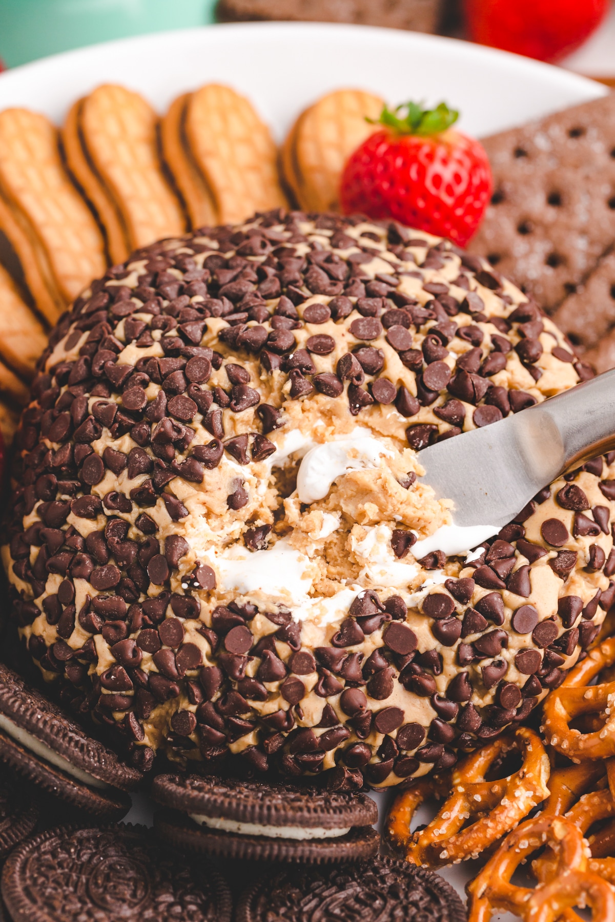 - We served this dip on a plate. Once the ball has been cut into, the marshmallow will very slowly start to ooze out as it comes to room temperature. You could very easily serve this in a small bowl so that the marshmallow fluff doesn’t make a mess on your cupboard. Our dip didn’t last long enough to cause a problem, though.