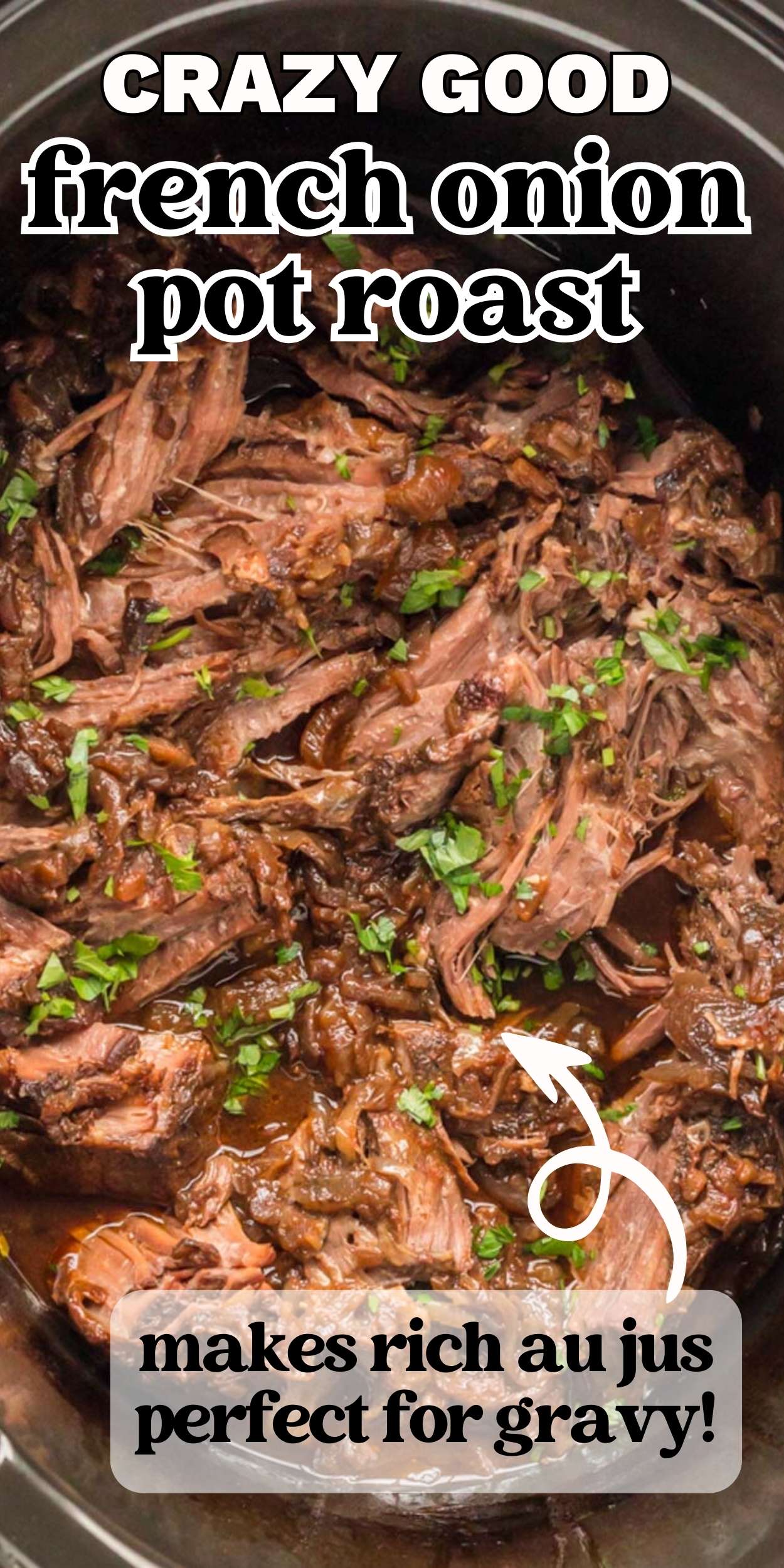 French Onion Pot Roast is a mix of two of my favorite dinners: slow cooked beef roast and French Onion Soup. This slow cooker pot roast is tender, flavorful, and has a rich onion-infused sauce that complements the beef perfectly.