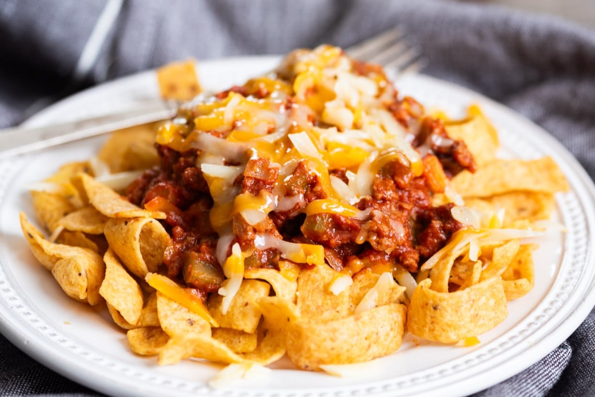 This ground beef dinner is loaded with veggies, but here’s three tips for Frito chili pie if you have picky eaters.