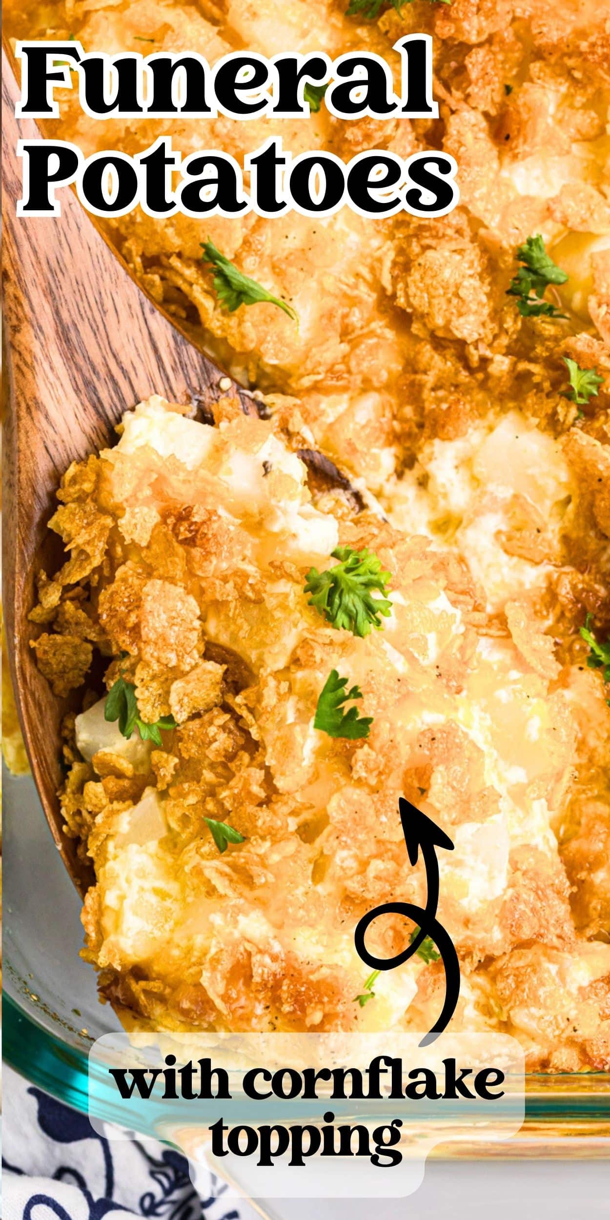 The ultimate Funeral Potato recipe with a creamy, cheesy base and crispy cornflake topping. Read our guide for make ahead tips, freezing guide and recipe substitutions. It goes well with our crockpot ham recipe.