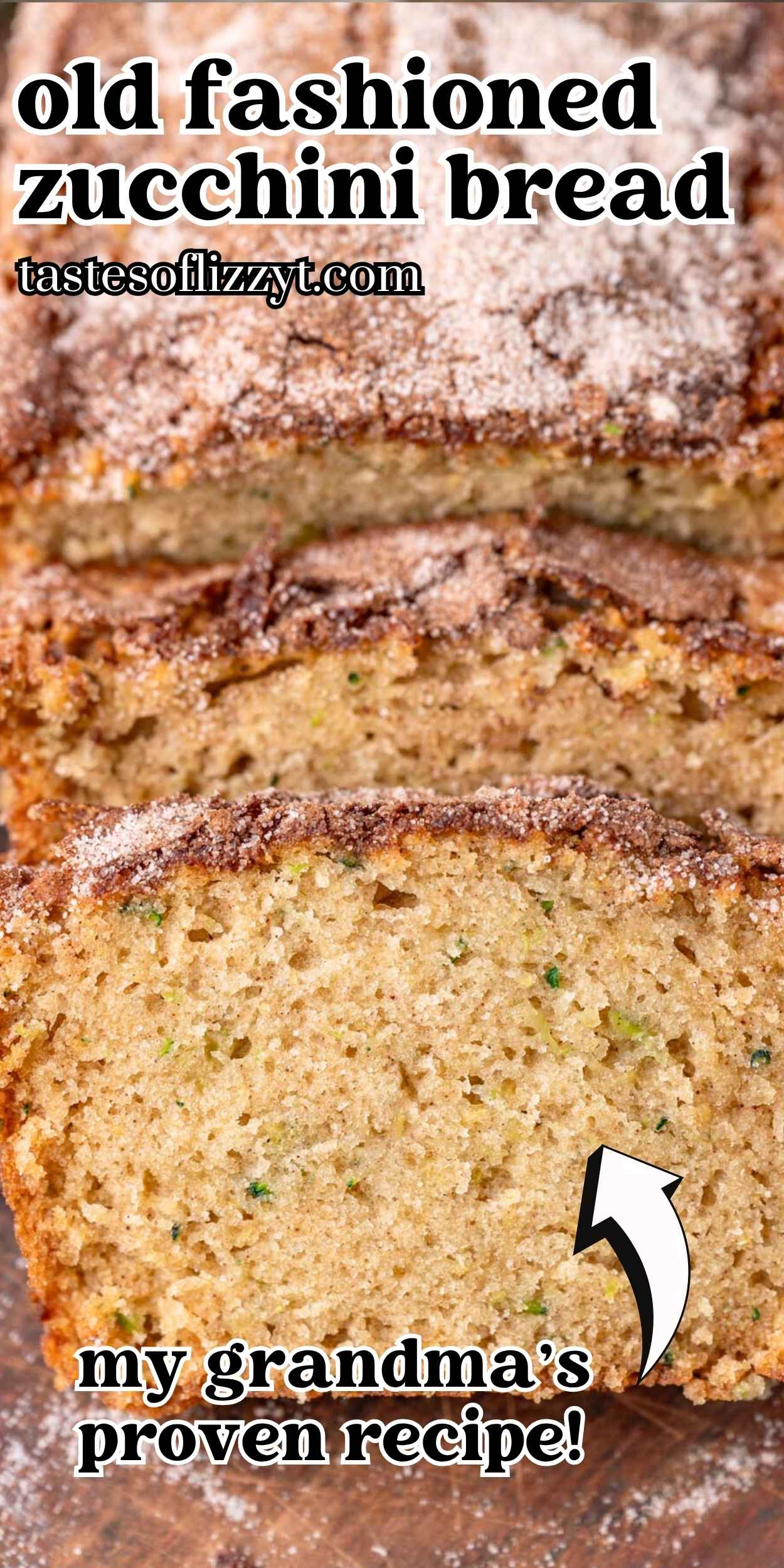 This old fashioned zucchini bread recipe is a tried-and-true family favorite. I add a cinnamon sugar topping to the unbaked loaves to give it a sugar crunch top, similar to our fresh berry cake, blueberry banana bread and blueberry peach cake.