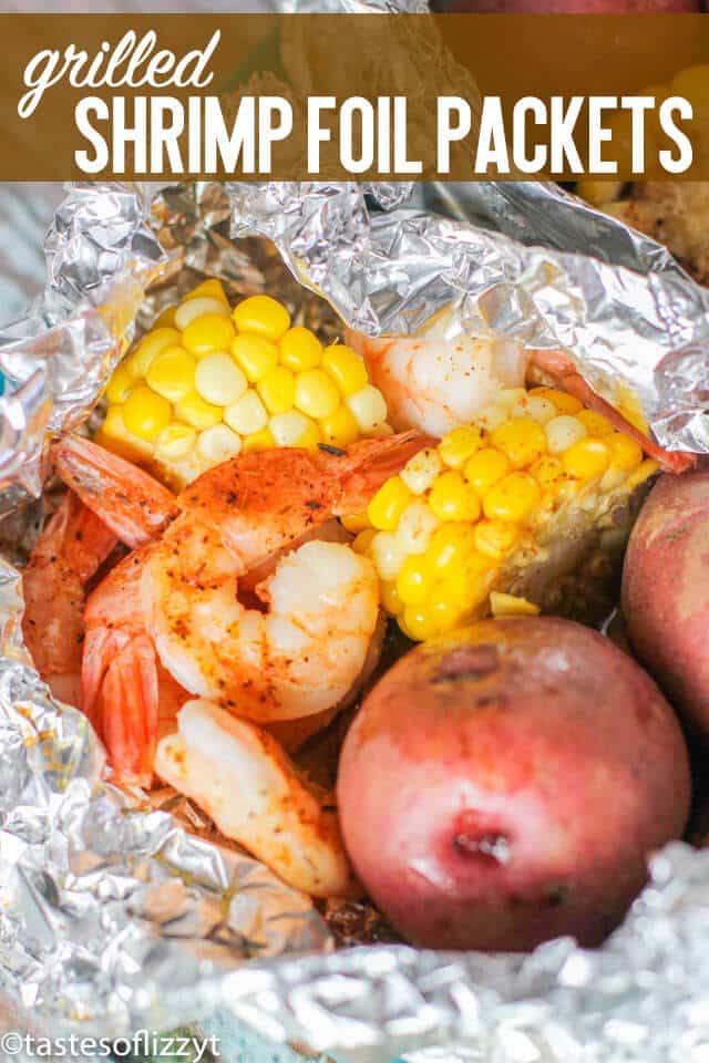Whether you are camping or cooking at home, these easy grilled shrimp foil packets with fresh corn and potatoes are a quick 30 minute dinner recipe.