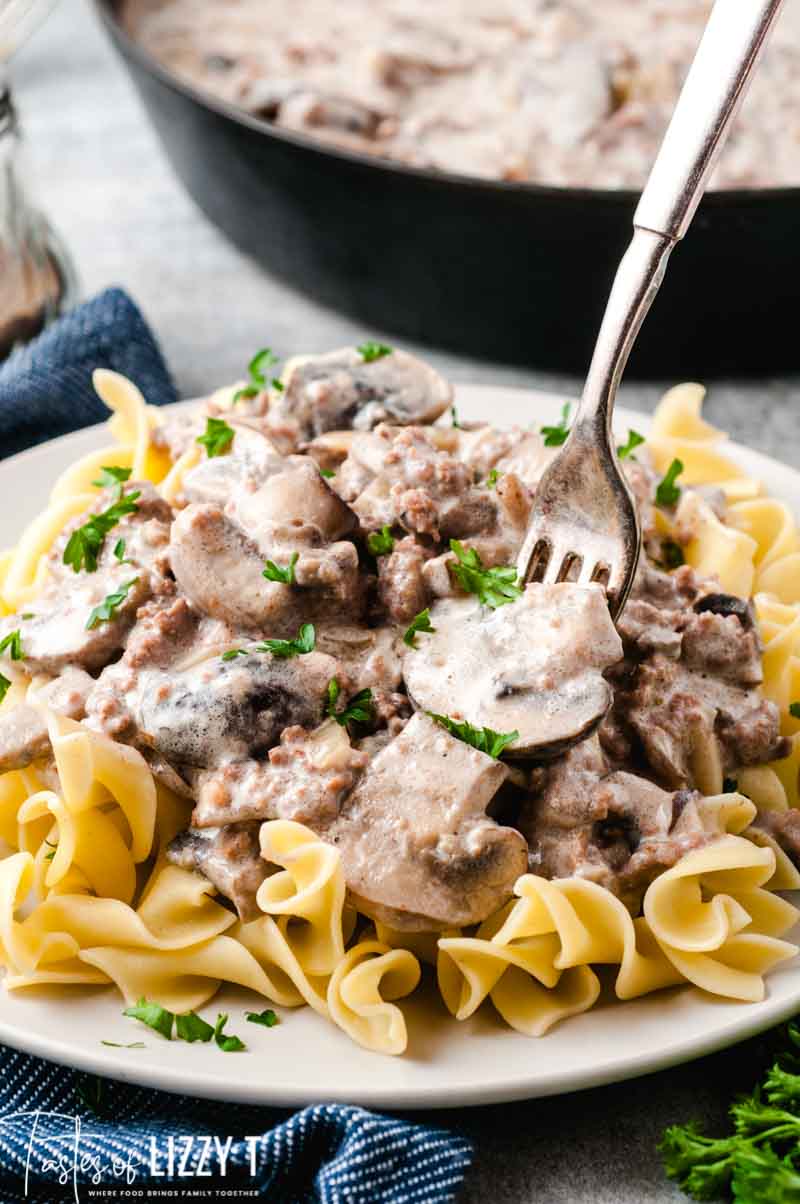 - uses one pound of ground beef (or try our chicken stroganoff!)