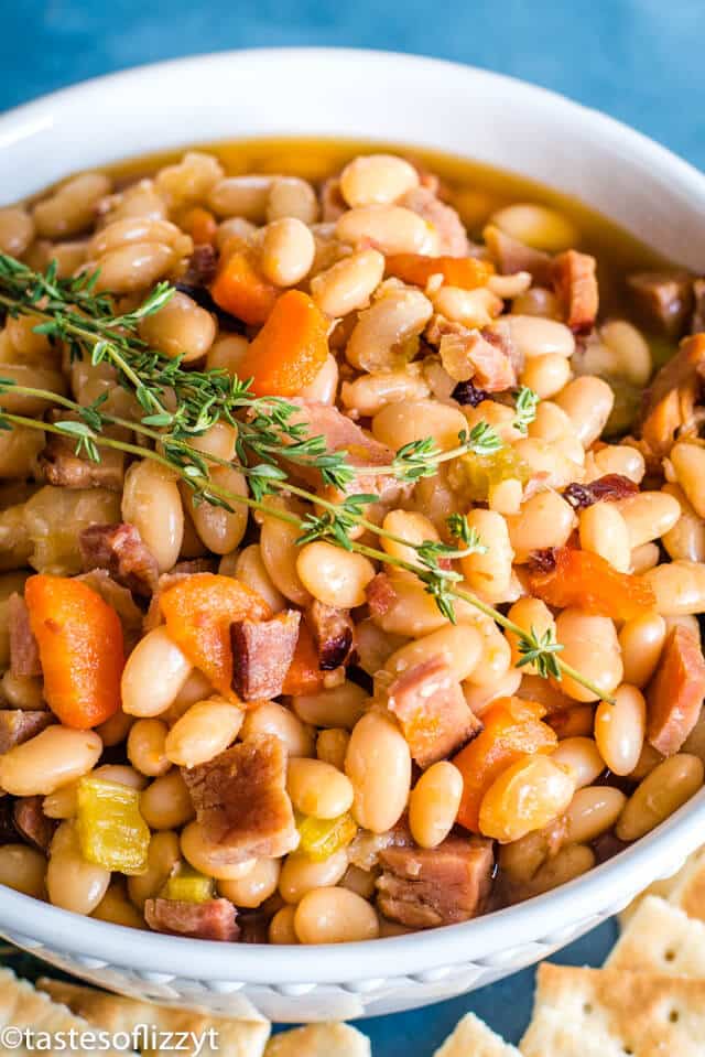 Use leftover ham to make this hearty ham and bean soup! Full of great northern beans, carrots, ham and seasonings.