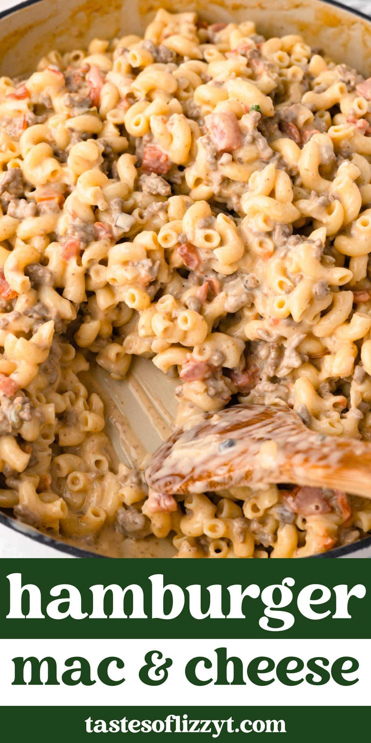 Hamburger Mac and Cheese ready in 25 minutes. A foolproof, hearty skillet meal with ground beef, Velveeta, elbow macaroni, and tomatoes with chiles.