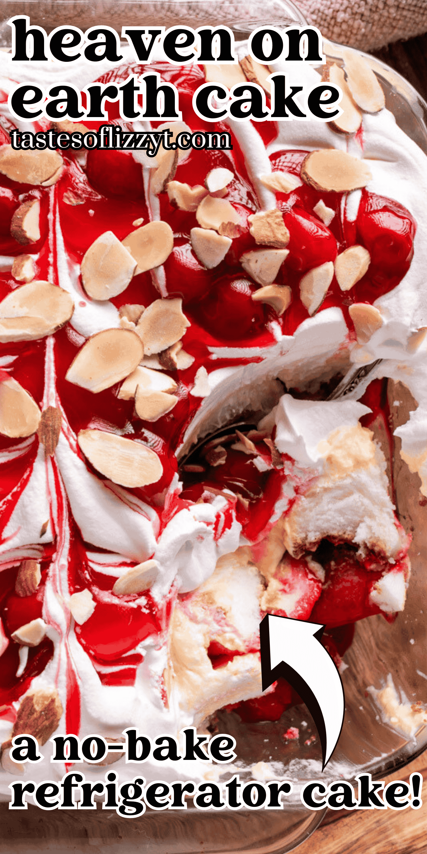 Use a store-bought angel food cake and cherry pie filling in this easy layered no bake dessert recipe. Heaven on Earth Cake is a no-bake layered dessert that looks every bit as good as it tastes.