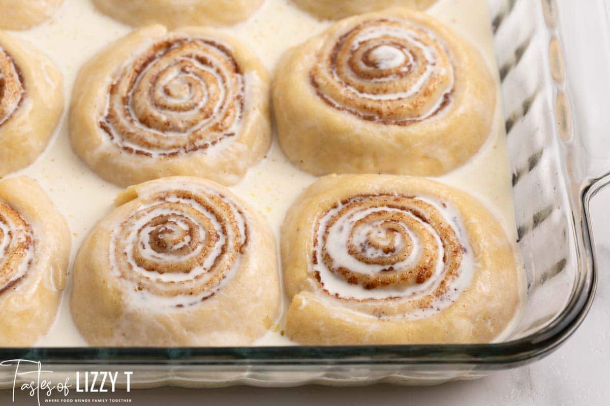 • Heavy cream. Heavy cream is what gives the best results. Evaporated milk, whole milk or half and half works too. Don’t skip this! It’s what makes gooey cinnamon rolls.