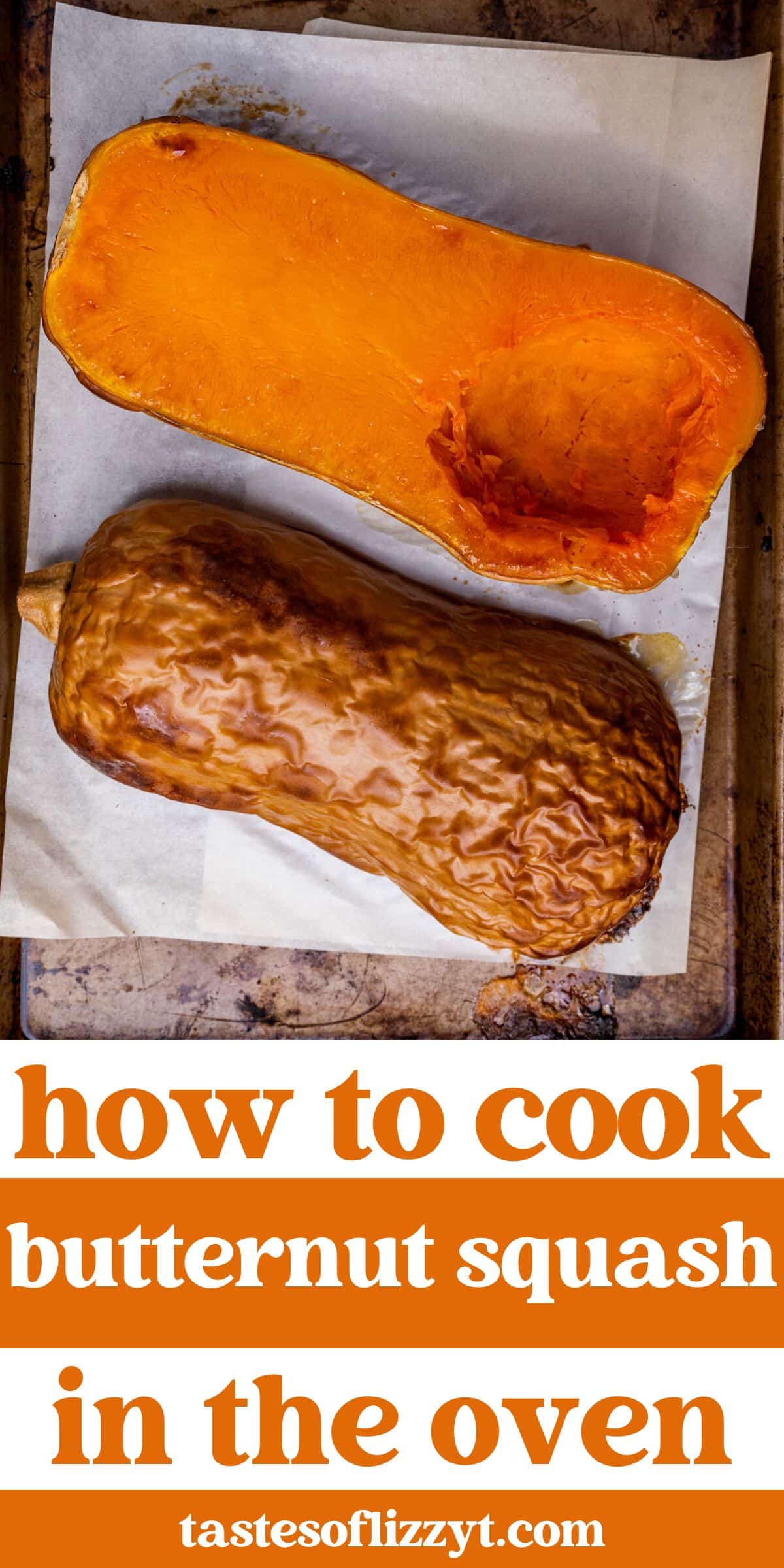 This recipe is for a roasted butternut squash that is cut in half and cooked in its skin.