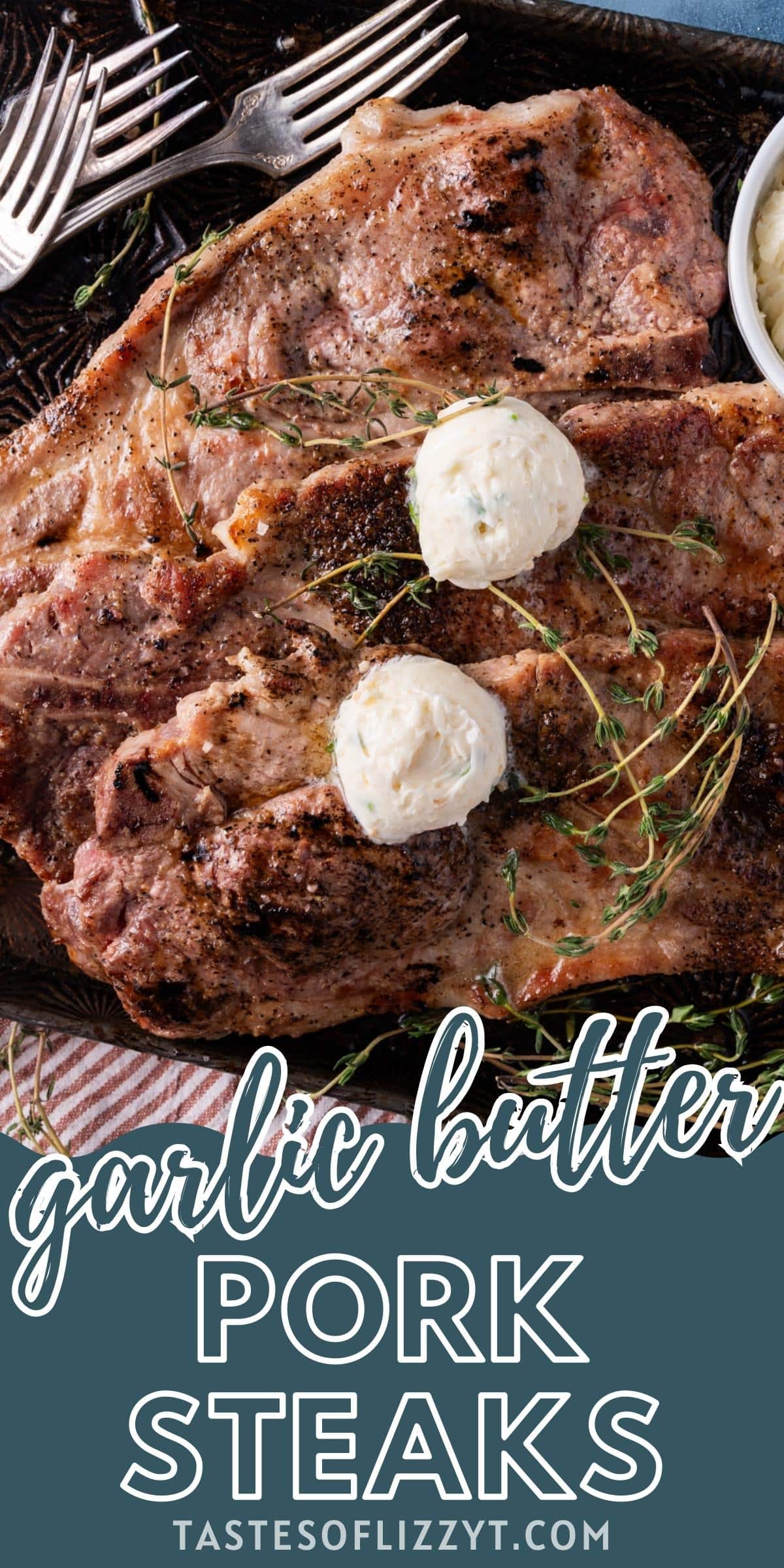 Learn how to cook pork steak perfectly, both in the oven and on the grill. Top with homemade garlic chive butter while the steak rests.