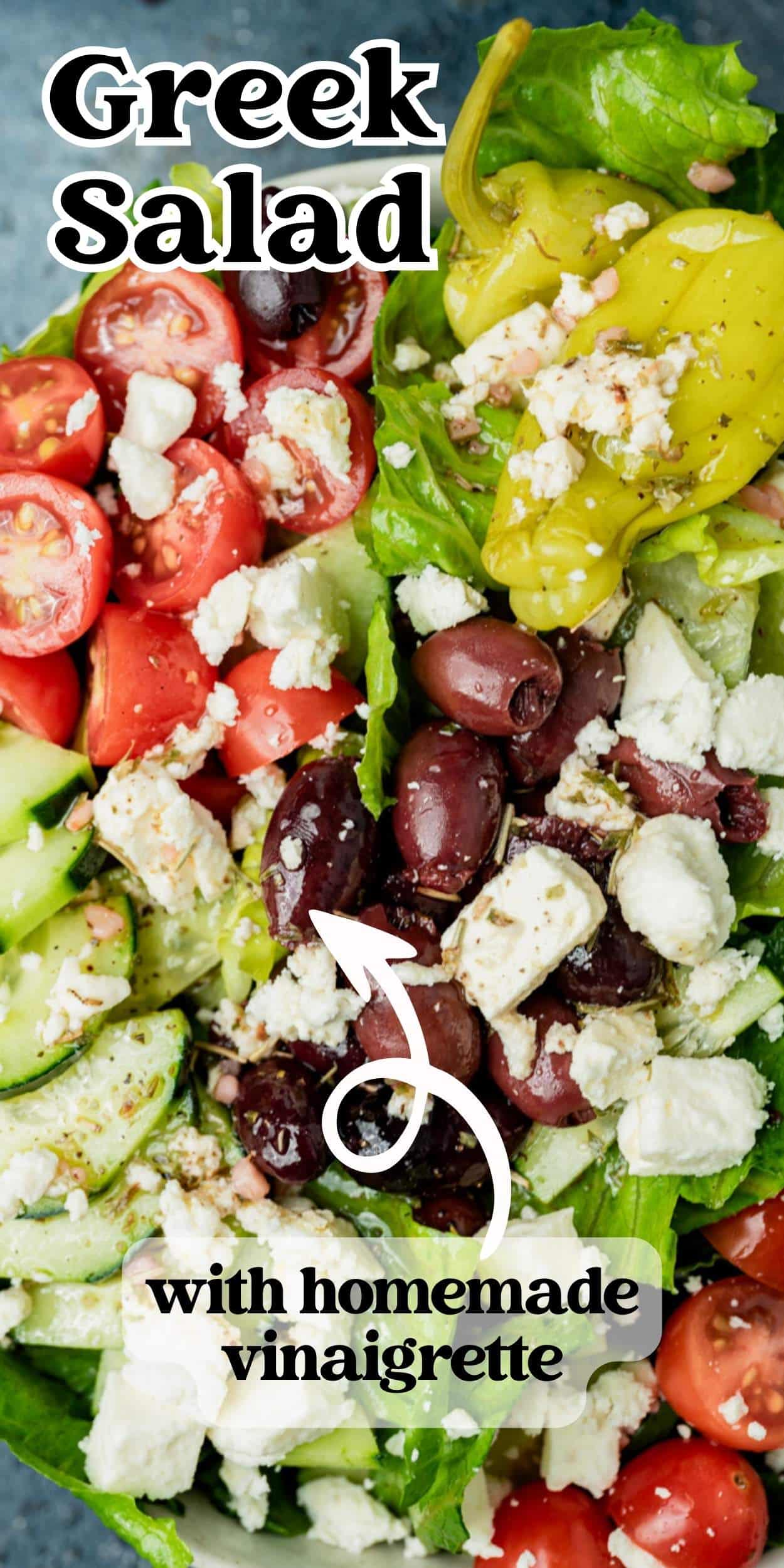 Learn how to make Greek salad with feta cheese, kalamata olives, cucumber, tomato, and a homemade vinaigrette. Serve it with pita chips, or as a side dish with grilled chicken.