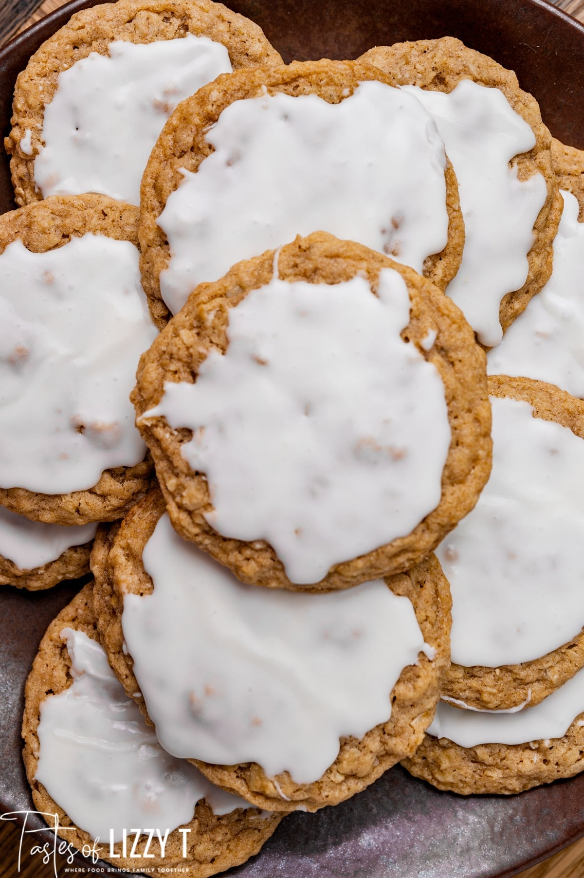 This is an easy iced oatmeal cookies recipe with no refrigeration needed. It calls for more brown sugar than white, which means the cookies will be slightly soft on the inside and a little chewy.